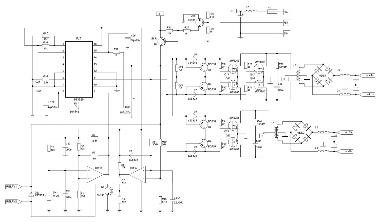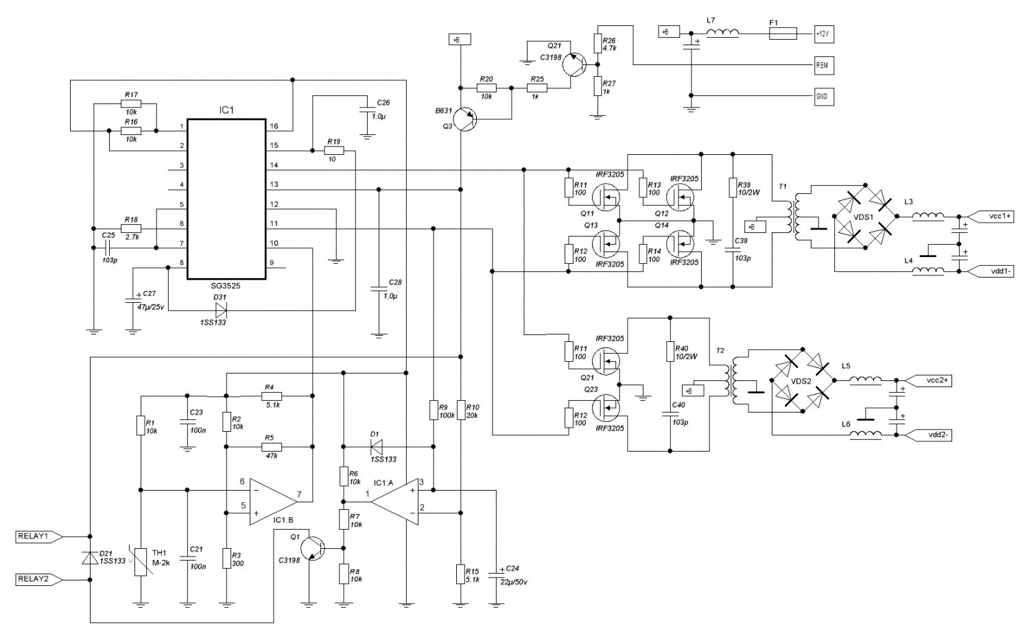 По 1) и 2) давайте ещё глянем как реализуется в заводском ПН-1200(правда,, на TL-ке)Нажмите на изображение для увеличения.
