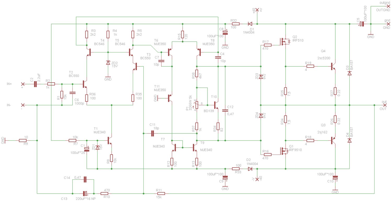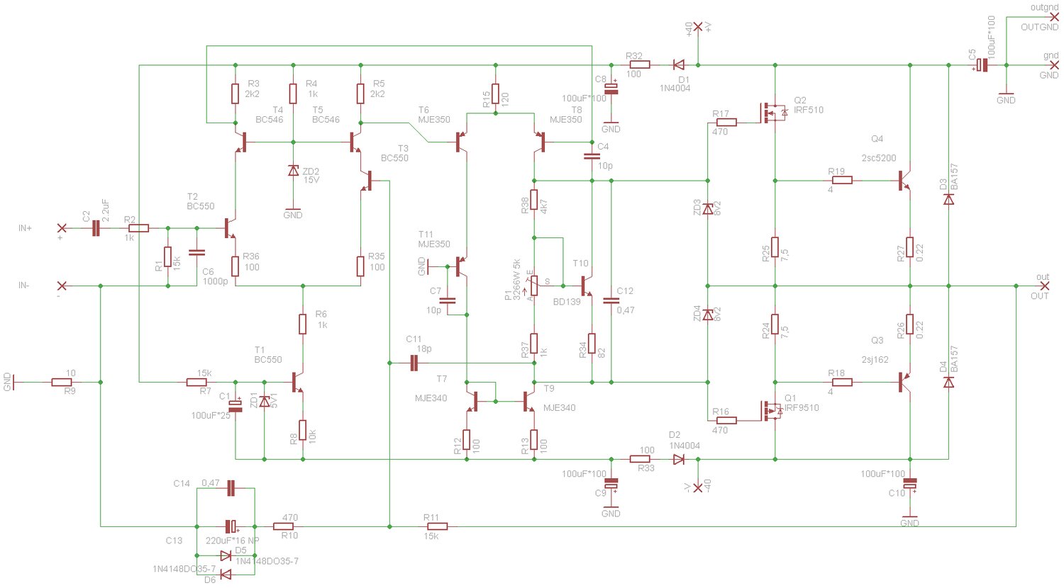 4. Советую увеличить ёмкости фильтрующих конденсаторов С5/8/9/10 хотя бы до 470 мкФ (тем более, что при питании +- 40 В не нужны дорогие на 100 В, а хватает на 50 В, так что по цене 470мкФ\50В часто дешевле 100мкФ\100В).