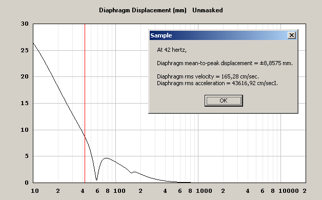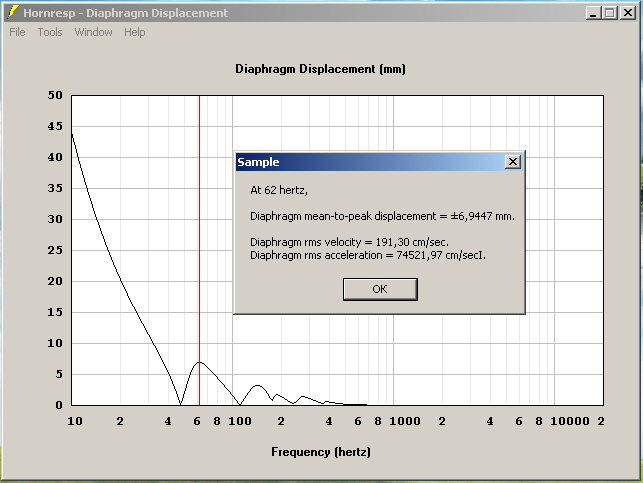 labuch60, по хорнресп прикиньте максимальный ход подвижки в рабочем диапазоне частот при максимальной подводимой мощности. Для миника диапазон от 50-55гц требует хода в диффузора в пределах Xmax (возможно Вы уже приводили скриншоты с ходом, я просто в роуминге и с мобильника - отключил отображение картинок). Совсем небольшой вылет за Xmax не страшен, его не заметить на слух. Но вот большая компрессия сведет разборчивость баса к уровню плохонастроенного бэндапаса, "ууух-пух".
