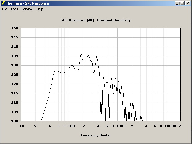 labuch60, тяжело из-за высокой компресии: Площадь диффузора ~550квсм, рот рупора ~118квсм, компрессия почти один к 5. Подвижной системе будет тяжело втягивать и проталкивать 2 метра воздуха через такое отверстие, отсюда звучание как из под лимитера-компрессора.