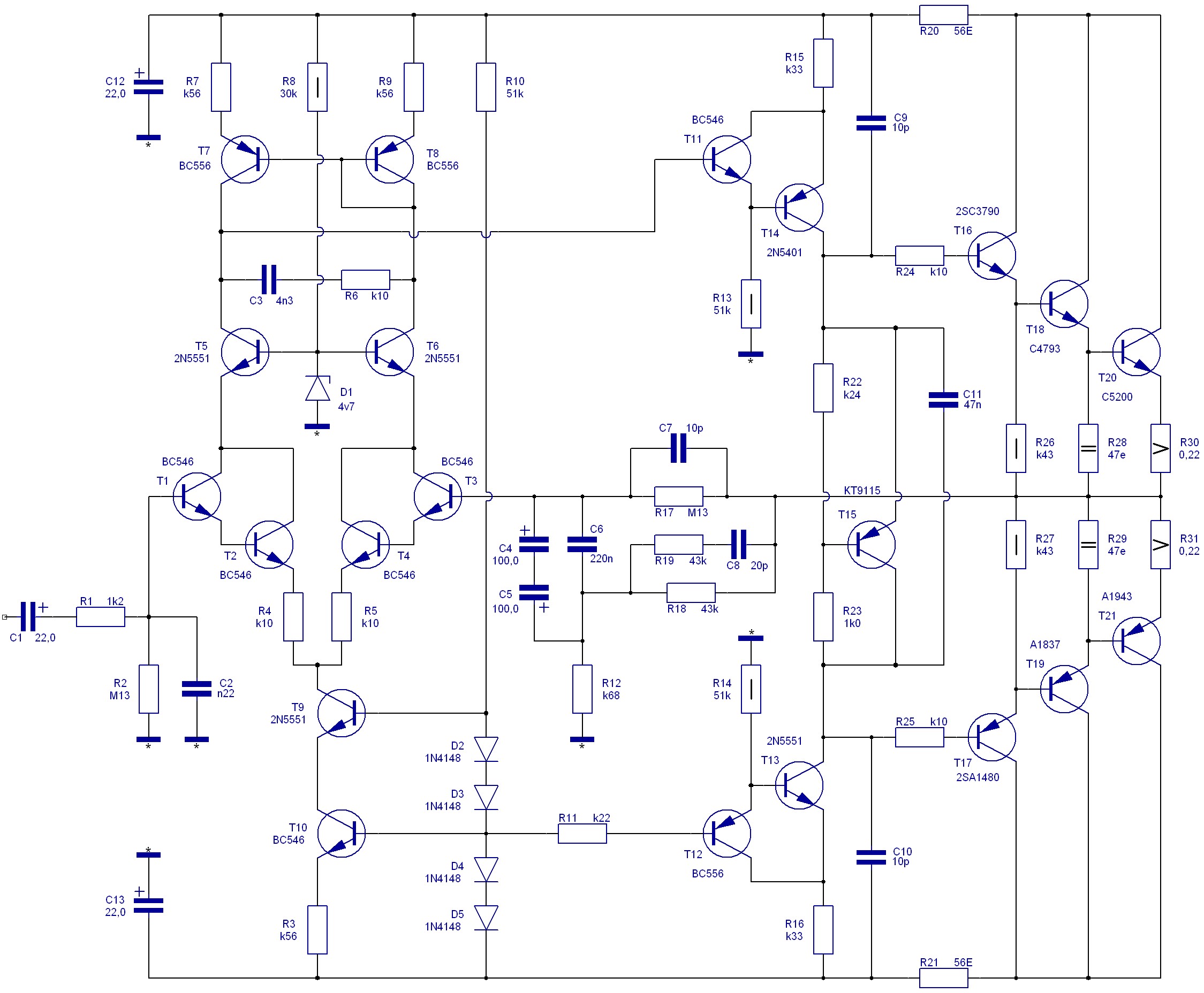 Добрый день форумчане!!!!!Буду собирать усилитель вот по этой схеме. Сижу рисую П.П с транзисторными усями мало сталкивался поэтому опыта не много. Готовые варианты делать не хочу т.к. сам хочу разобраться поэтому и выбрал эту схему. Может где-то в нете и есть для него все но я не искал. Кто что скажет про схему?