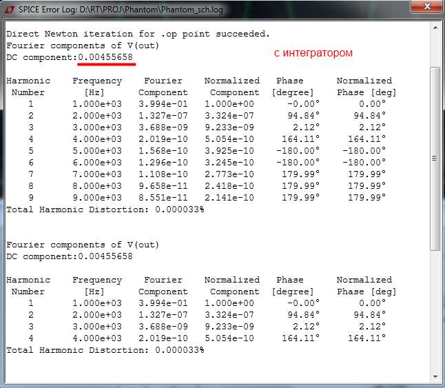 А как выглядит у тебя схема без интегратора? Ну по цифрам, насколько я вижу, с интергатором постоянка получилась в три раза выше. В железе всё не так: как я уже писал, постоянка с интегратором - доли мВ, а без него при изменении температуры она будет дрейфовать (проверено). Понравился КНИ. По поводу АЧХ - при практическом использовании схемы её логично несколько ограничивать на входе, хотя - по ситуации.