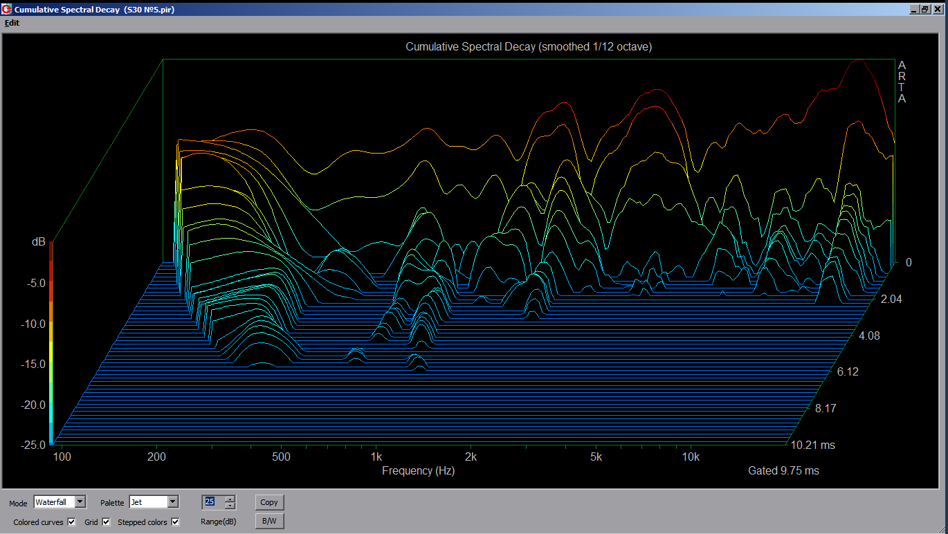 Поэтому выбора практически нет. Снизу - настройка ФИ, всередине - задушенный бафл-степ, с 2 КГц - вниз. Ибо уже почти не поршень+хрень от колпачка нужно глубоко удавить+ 2х от резонансной пища + межосевое расстояние между ГГ.