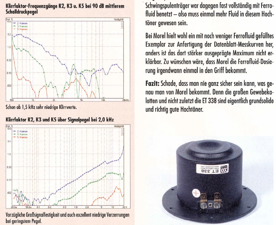Измерил свои MDT33 с 10см при 90дБ, но они без ферромагнитной жидкости и что-то мне подсказывает, что микрофон немного врет. Уж больно подозрительно себя ведет вторая гармошка. Надо будет позже еще разок исследовать этот вопрос, а то в новой АС чего-нибудь наделаю...
