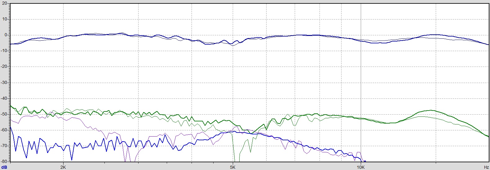 Уж никак нет. У MDT33/ET338 при 90дБ уровень второй третьей в районе -60дБ, третья во многих местах ниже -60, но в районе 4,5-7кГц где-то наравне со 2ой.