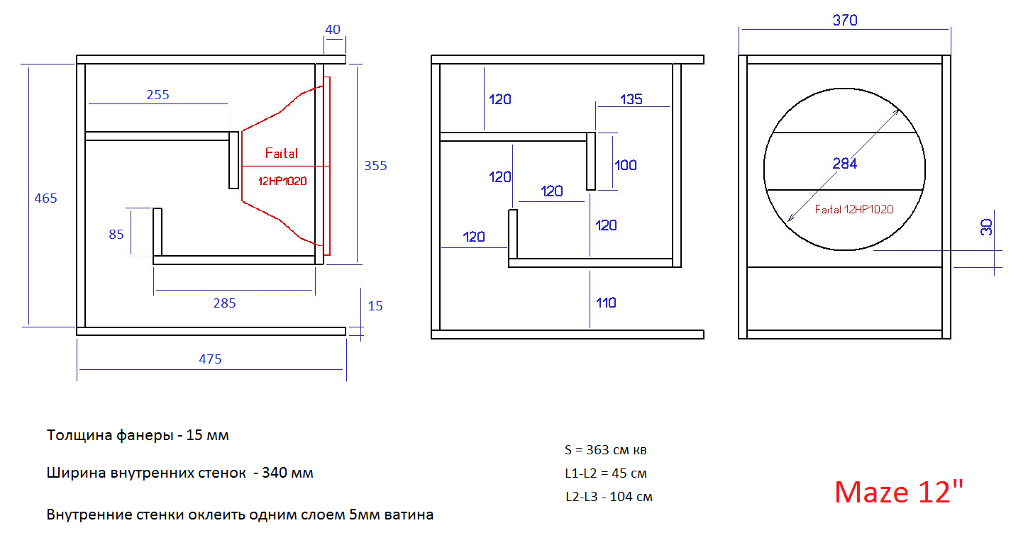 Попробовал сделать ПРО лабиринт с 1/3 смещением динамика на 18" головке EVM 284C26, габариты конечно получились взрослыми, но и звук !! Во первых хорошая чуйка, во вторых хорошо "копает" вниз, современный денс отыгрывает просто великолепно.