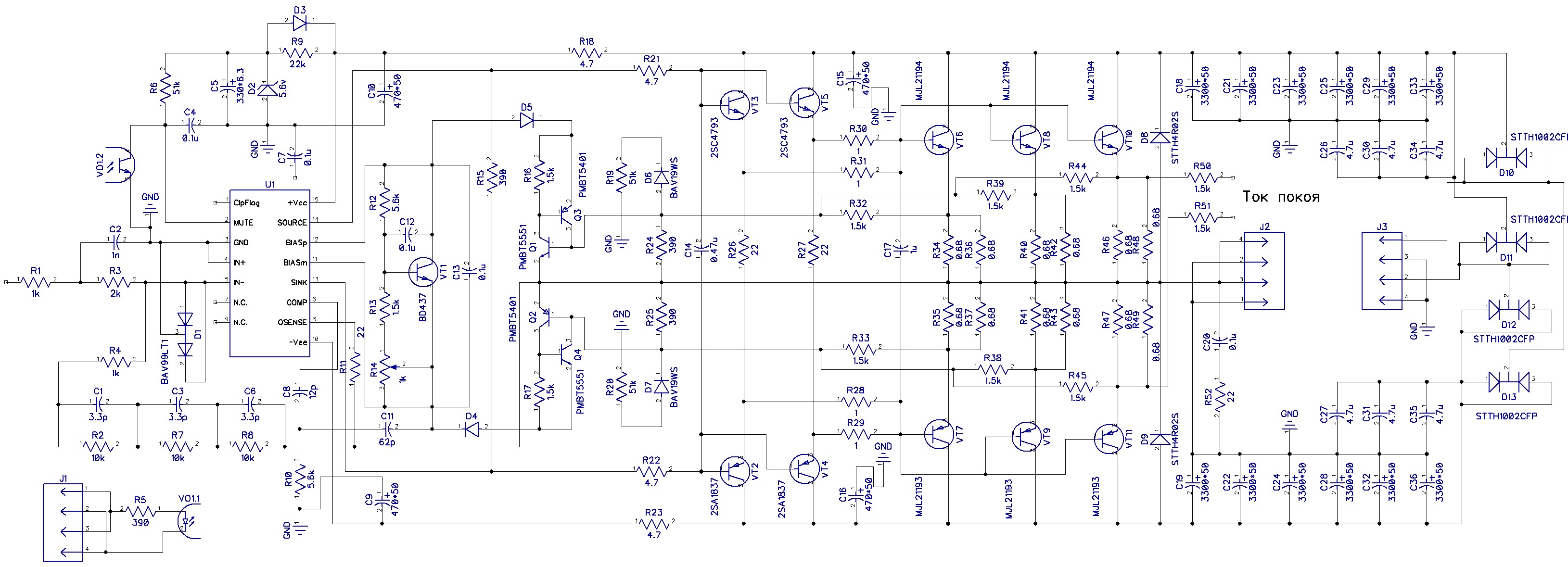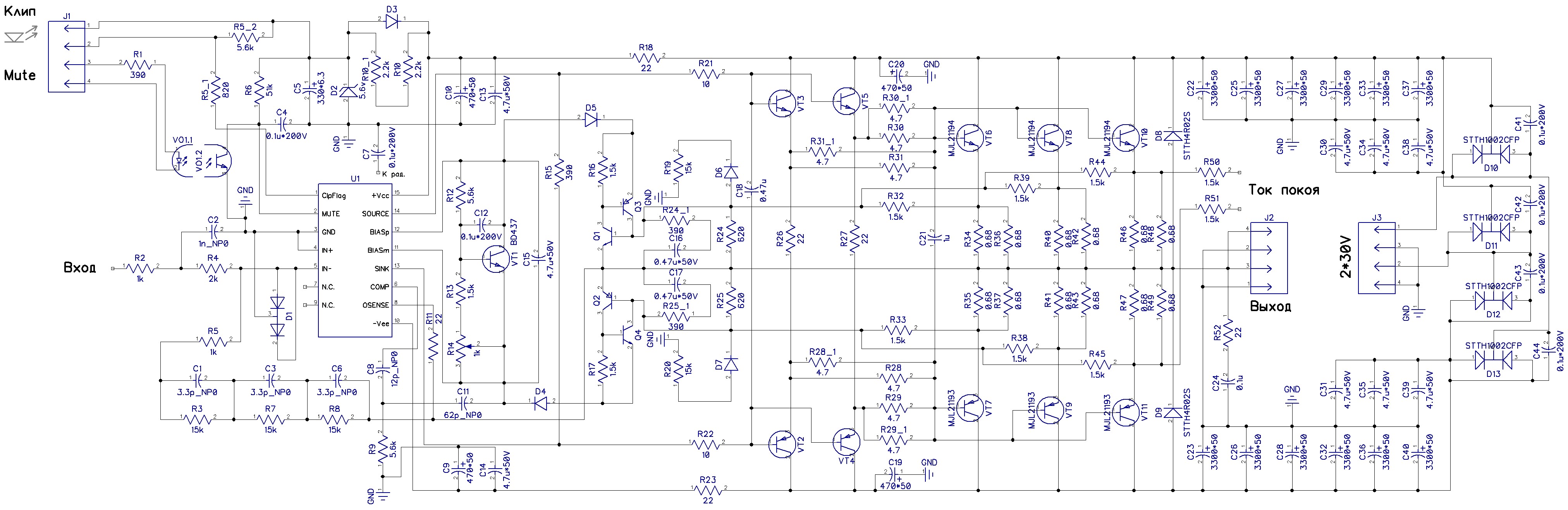А в чём, собственно, особенность конструкции - в инете масса их вариантов. Звучание этой МС также оценено неоднократно и в принципе совпадает с вашим. Простите, а схема присутствует на форуме или она типовая? Хотелось бы субъективного сравнения с другими драйверами, например TDA7250, с другими транзисторами. У меня к примеру использованы только полевики, других не слышал.