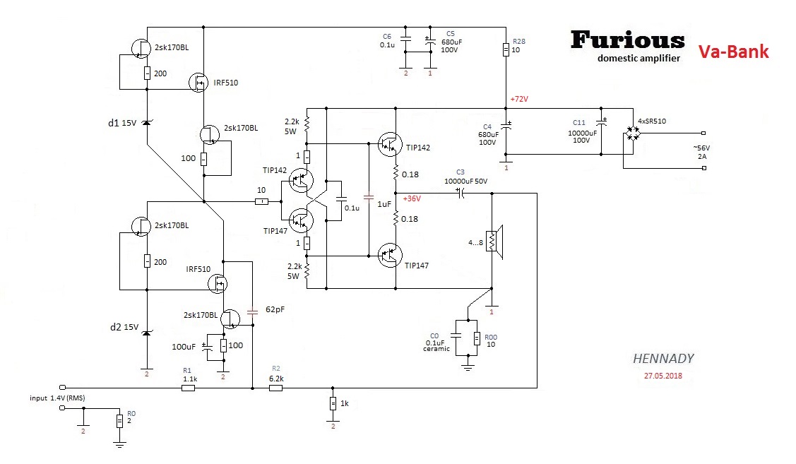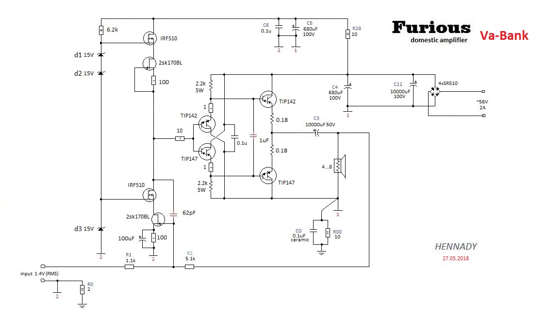 апгрейд, радикально уменьшающий количество деталей схемы, параметры по почтоянному напряжению и току аналогичные схе в варианте Ва-Банк, при лобовом сравнении вариант "диккенс" звучал предпочтительнее, особенно четко звучать стали именно ударные...