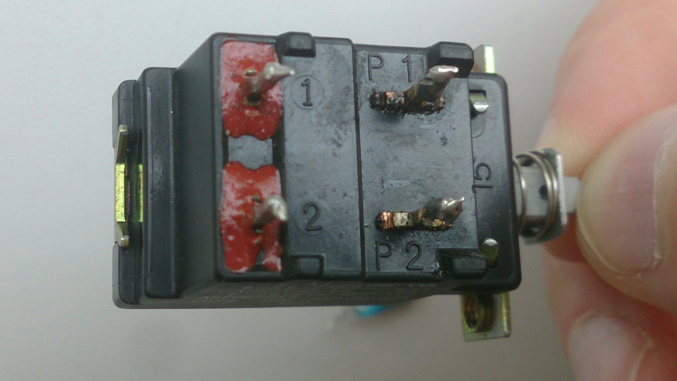 я не знаю. на корпусе должно быть написано какой контакт с каким соединяется. либо 1 + p1 и 2 +p2 или 1+2 и p1+p2...