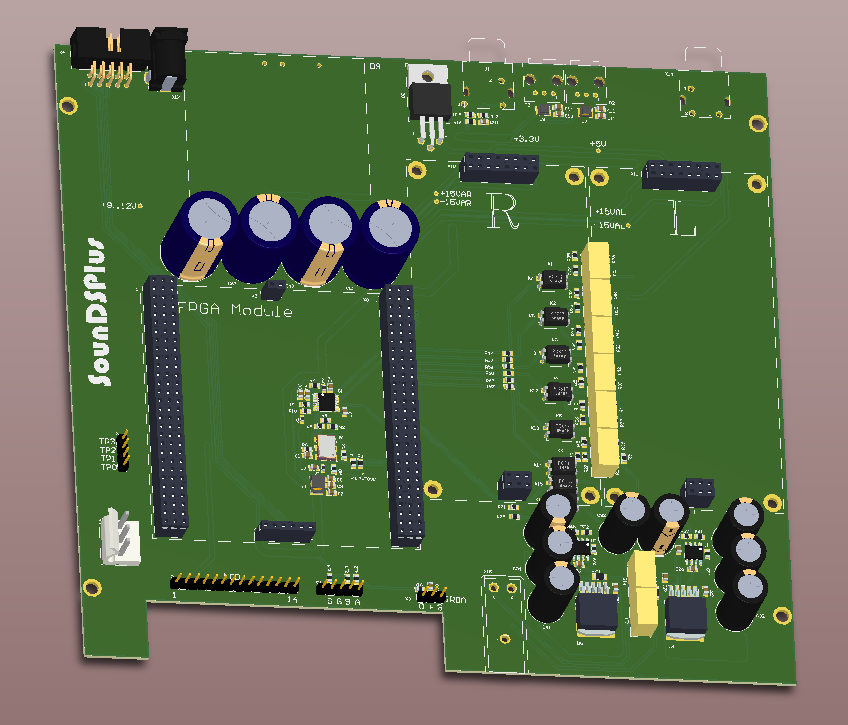 Если ставить 5842, то лучше непосредственно на аналоговый модуль. В этом случае базовая плата, как таковая вообще не нужна. У меня ПЛИС вынесена на несущую плату, так как она управляет всем, от обработки ручки энкодера до приема данных по USB /SPDIF, фильтрации и отображения информации на экран. И греется она несоизмеримо с 5842.