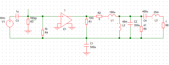 Рассмотрим схему буфера с К=1, у которого нагрузка не заземлена, а подключена на плавающую землю, образованную двумя конденсаторами. К этой же плавающей земле GND подключен и источник сигнала.
