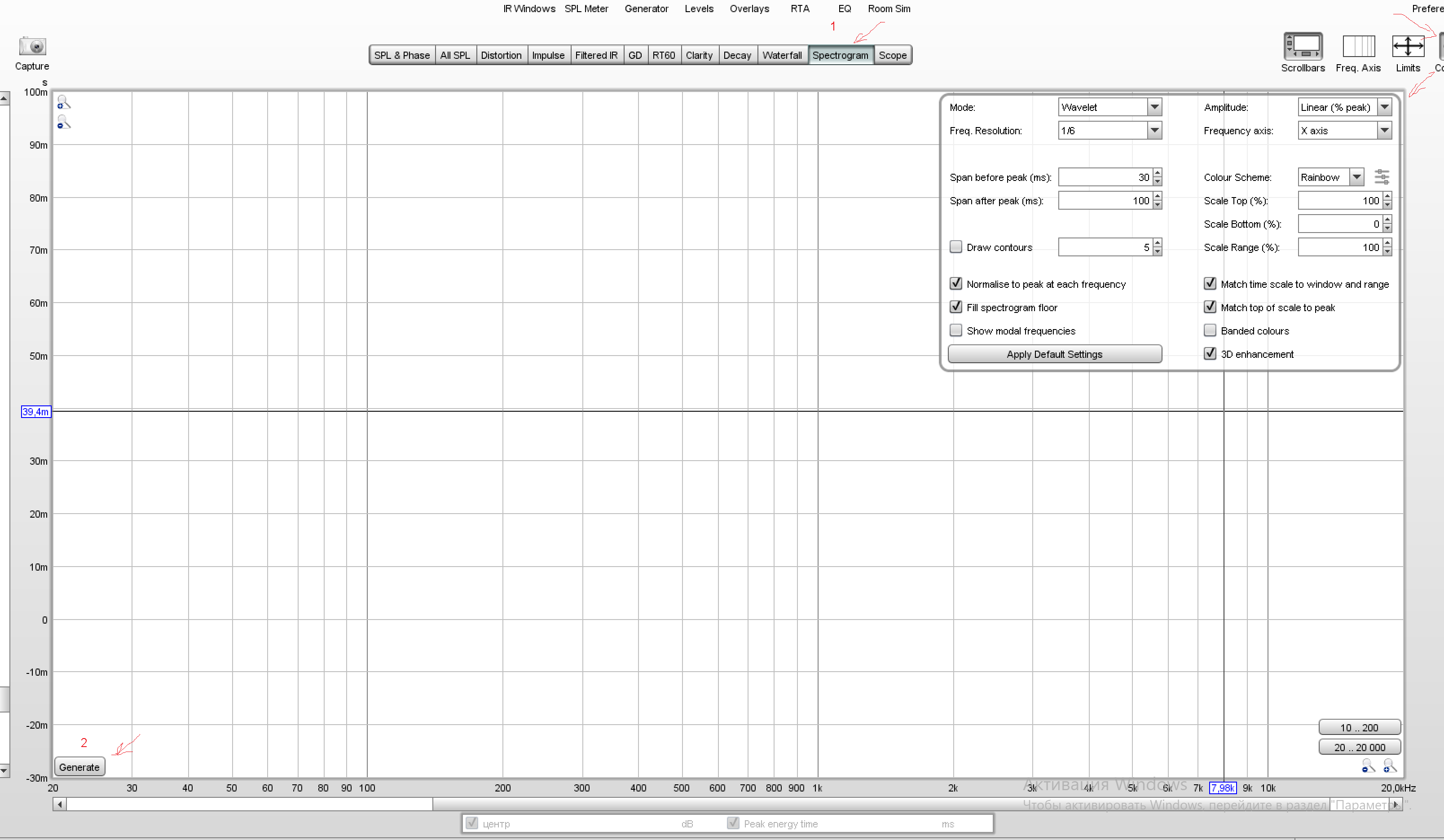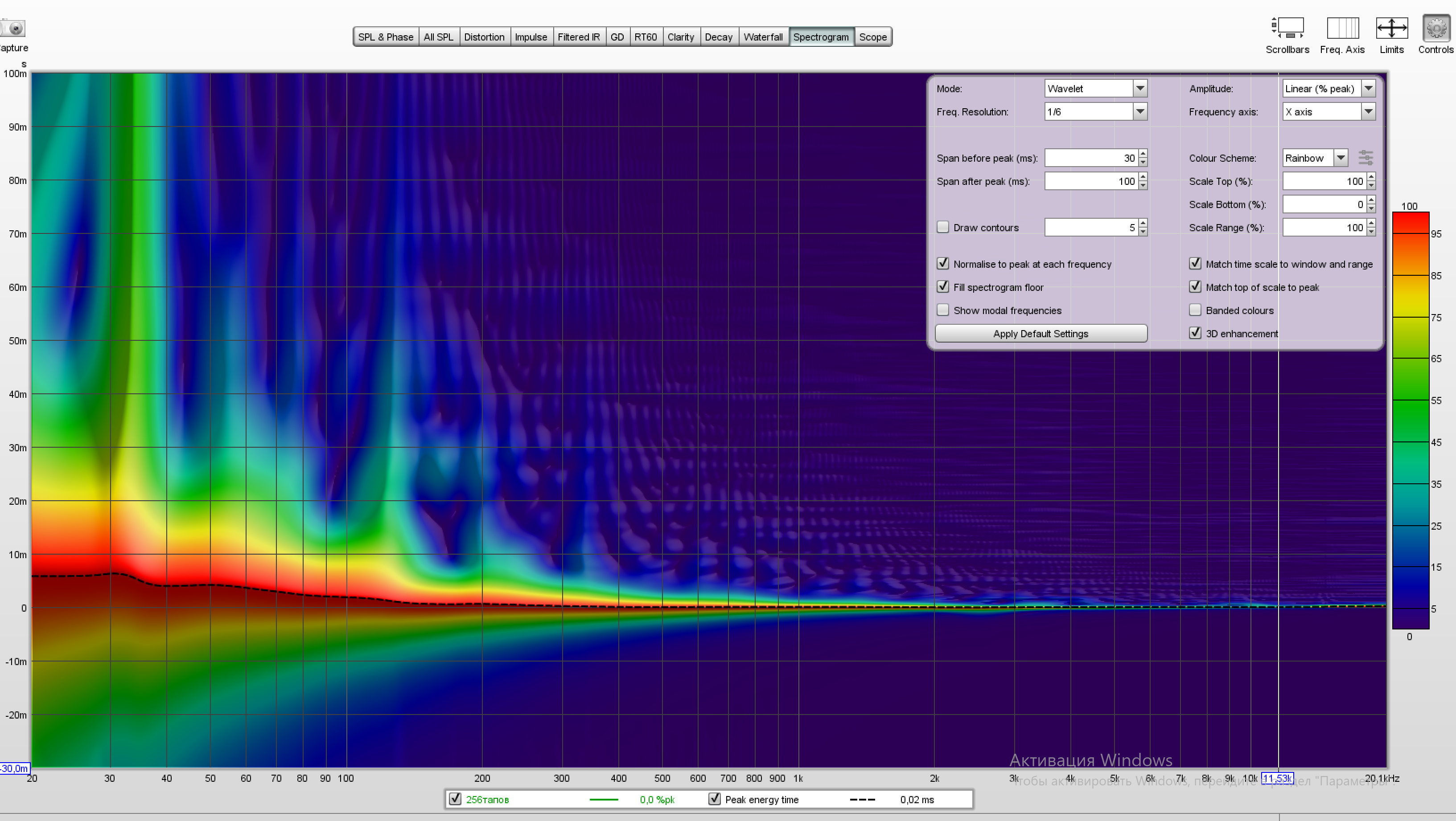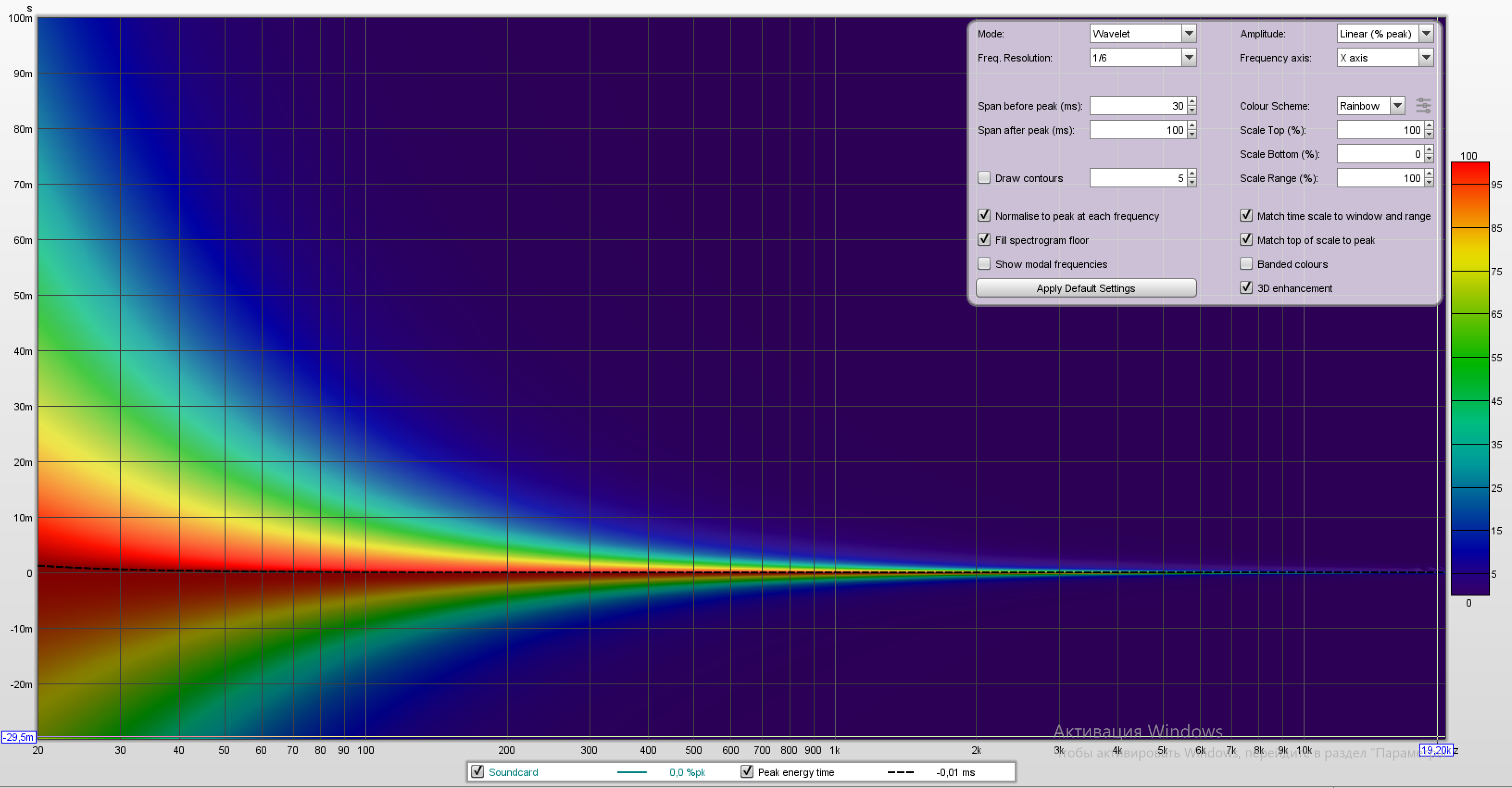 • Оконные измерения, позволяют отсечь первые отражения звука в комнате, ценой корректности измерений на НЧ, чем короче окно, тем хуже