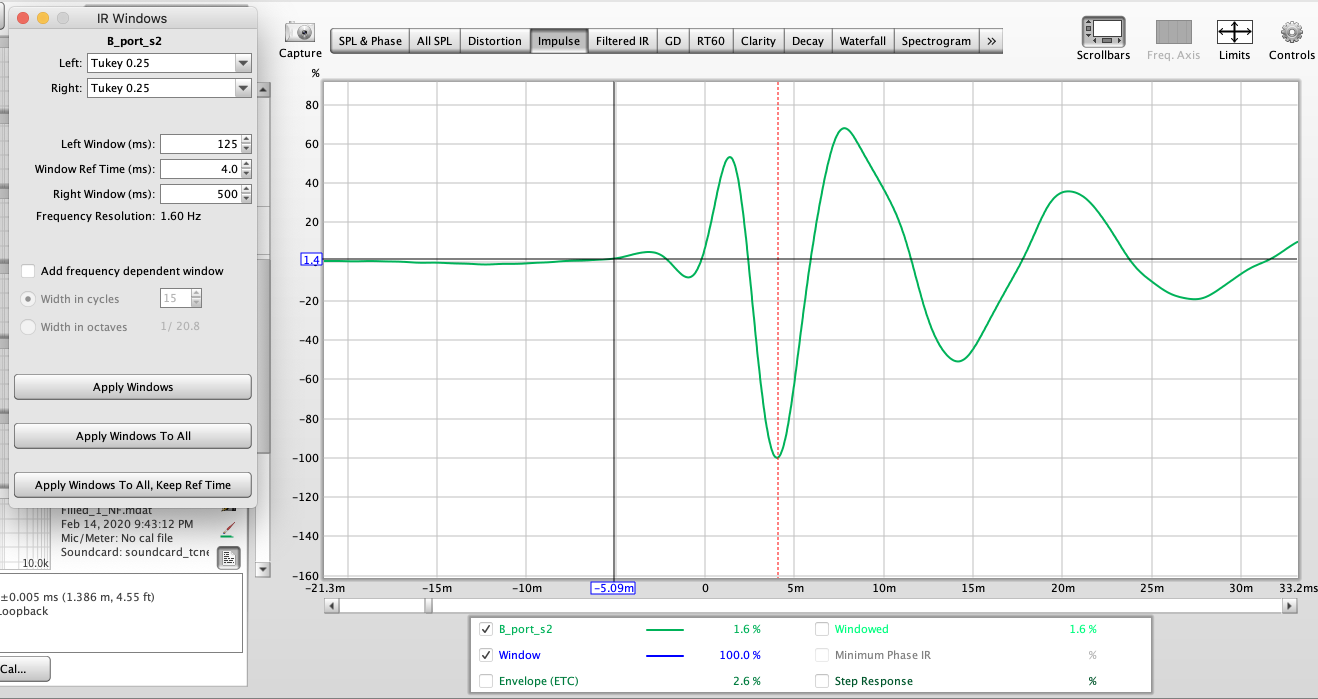 Вот у меня автоматом ничего не получается. Пытался двигать там что-то во вкладке импульса... но понять бы вообще в тех кривульках где импульс то, а потом к нему подставлять начало, да и в куда ставить конкретно курсор. Электрически у меня на правый линейный вход подаётся сигнал с микрофона, на левый я подаю сигнал через делитель 1к\10к, который цепляю на выход усилителя, работающего на акустику. В JustMLS я просто ставил начало окна на первый пик импульса, но там картинка была всего с одной кривулькой... в REW же столько всего непонятного пока...