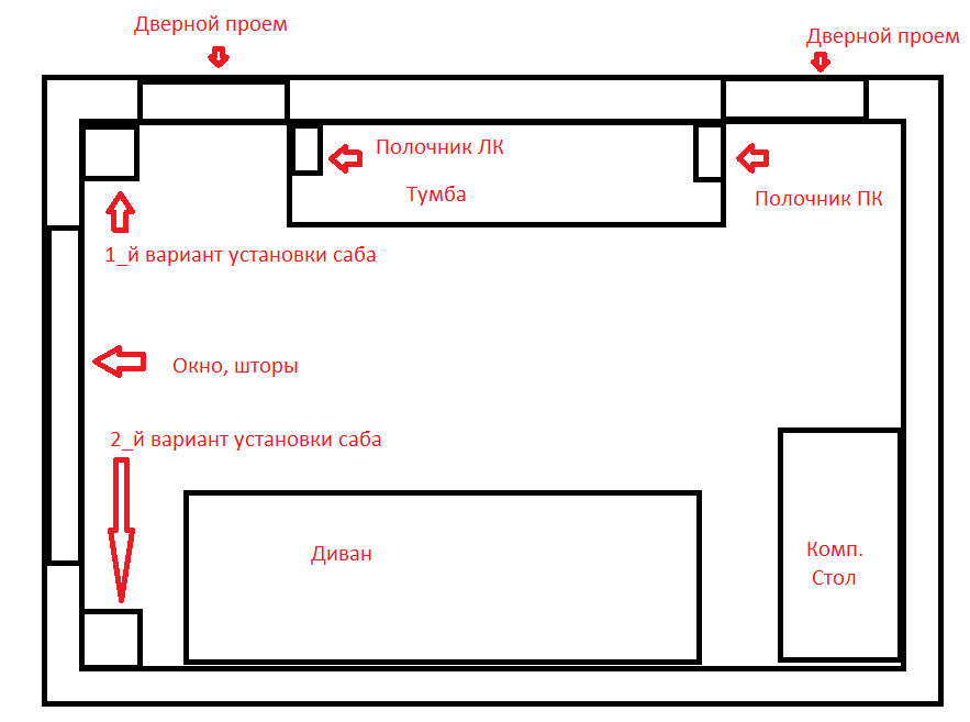 Абсолютно неприемлемо! Попробую нарисовать комнату и расположение.