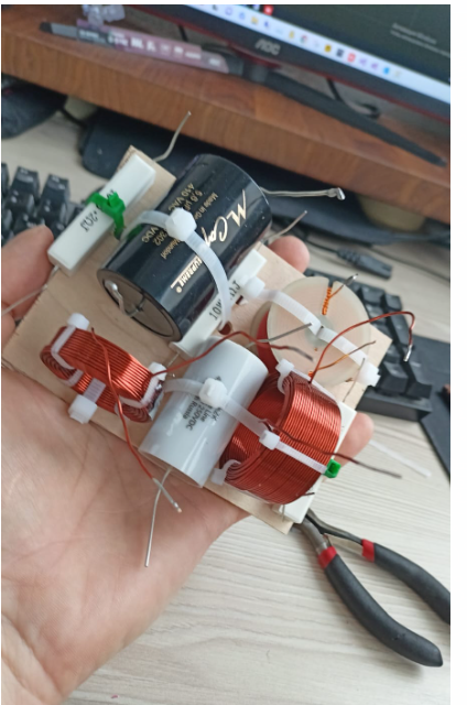 R 6ом - C 5.6мкф и вниз катушка 0.33мг
