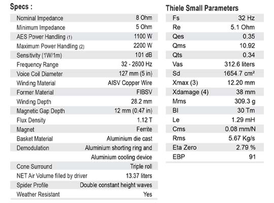Так это не а бы какие эстрадные) Вы на параметры гляньте. Мотор там приличный. Лин ход +-8мм, резонанс 32Гц, добротность 0.34, масса подвижной системы 300гр всего, при такой то площади, кольцо фарадея в мс. За такие деньги лучше наверное и не найти
