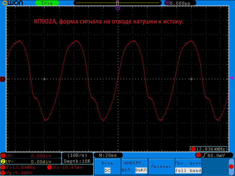 Первый случай, в панельке КП307А. Второй случай, том же генераторе с катушкой что на фото, удалён из панельки КП307А и подпаян КП902А. Спектры сигналов и шумов показаны копии экрана.