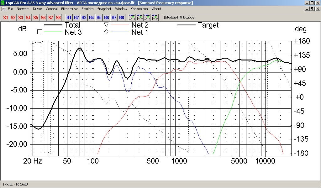 Конечно по центрам. Измерения напротив каждого динамика вроде уже учитывают баффл или я ошибаюсь? от края корпуса 105. Как отправить файлы измерений?