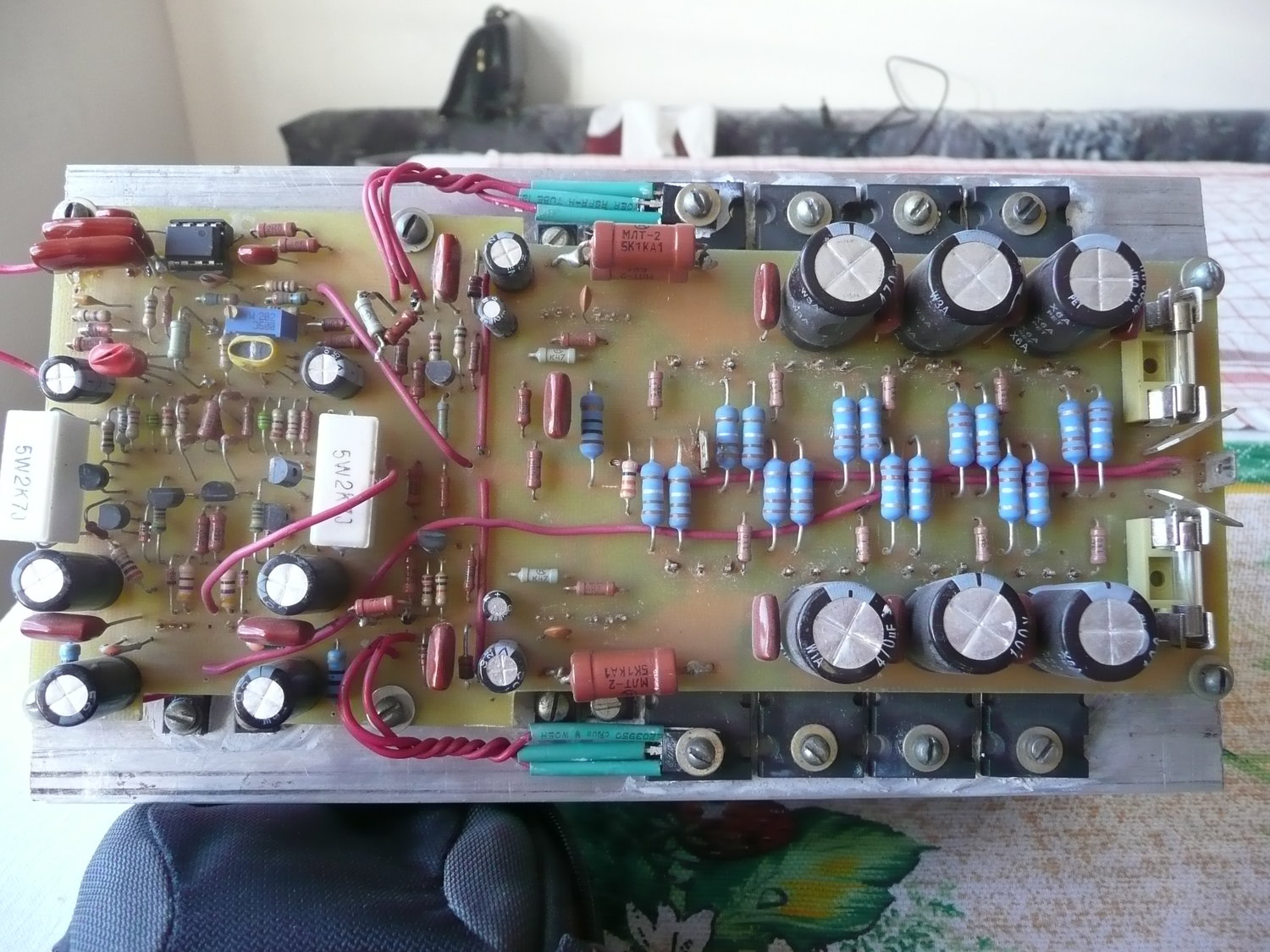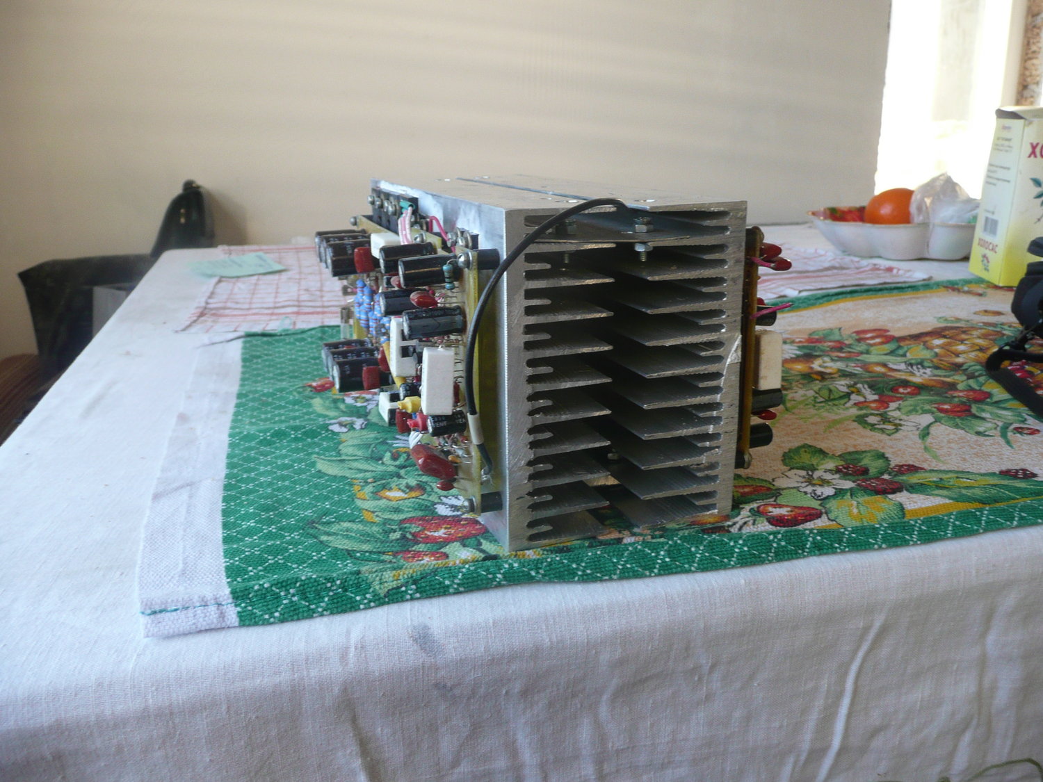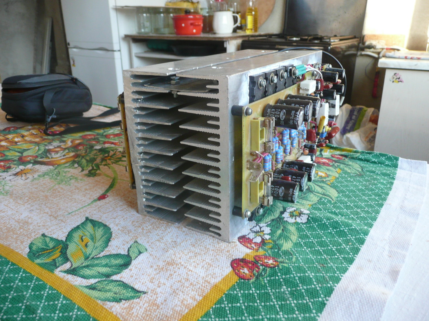 - констуктивно плата в параллель радиатору, силовые транзисторы с нижней стороны платы ногами в плату