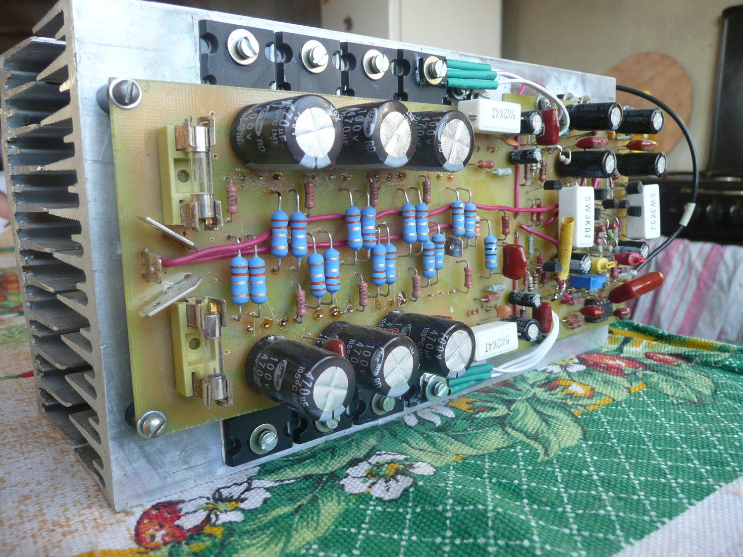 Вчера прислали КТ502/503, так сегодня запустил один канал усилителя. Питание пока что хилое, 2*25В. Нормальный блок питания - в стадиях разработки. Никаких настроек не проводил, даже без них усь звучит лучше чем тот которым сейчас пользуюсь. В данный момент стоит собранный Stonecold в конфигурации 5.1 для дом. кино. Акустика - переделанные Tannoy Mercury F1. В выходе связка, о которой писал выше. Позже одну пару MJE15034/15035 заменю на 2sa1837/2sc4793.