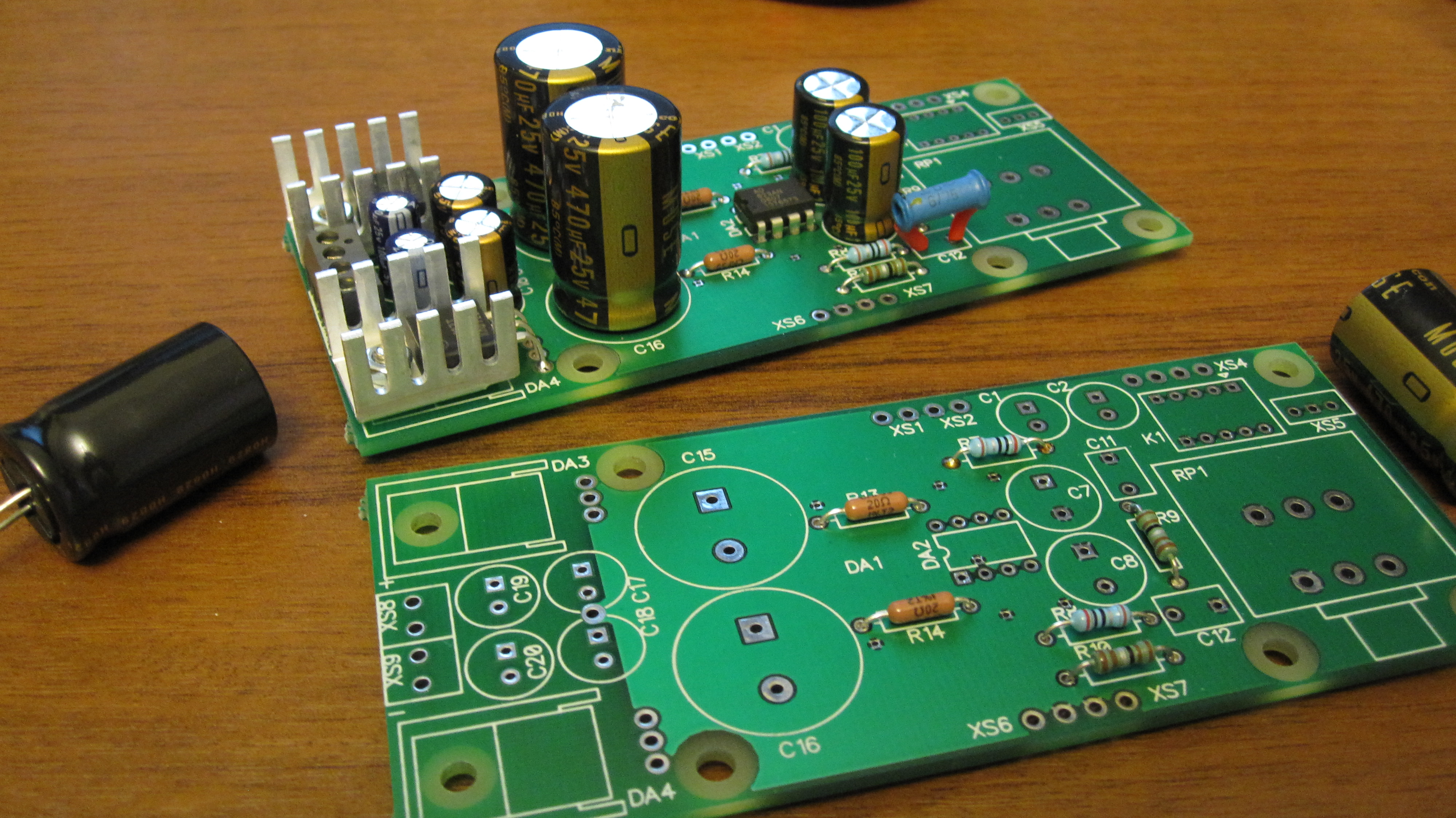 Но вот удобство установки компонентов - что-то с чем-то. Когда начал подбирать конденсаторы похожих номиналов просто бесился и скрежетал зубами. Понятно, что можно сделать заказ в буржуинстве и подождать от двух недель до полутора месяцев при полностью, в общих чертах, готовой к запуску плате. Но что делать, когда ничего, что есть в наличии, из в общем-то неплохих конденсаторов, в плату просто не лезет. Лишних 5мм длины платы качества вовсе не украдут, а вот удобство будет нириальне. Пичалька...