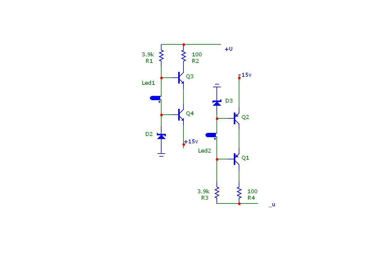 Это просто так типа индикации сделано,можно было резистор поставить или стабилитрон на 3вольта ,но так показалось удобнее.Главное было обеспечить равное падение напряжения на транзисторах.Вроде удалось.