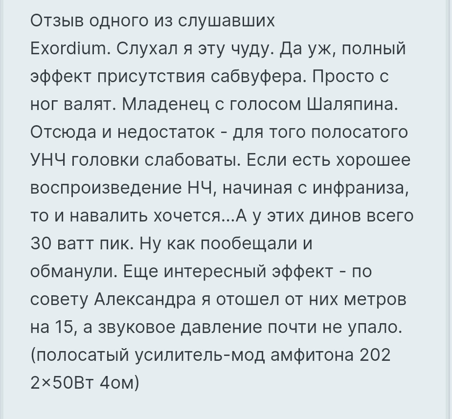 Скорее вам не хватило мудрости не только понять принцип но как сделано. Я не только понял принцип RTL но и делал. Причём на одной 6.5" голове, куда дешевле и проще. Как сказал.один из многочисленны тестеров системы: уму непостижимо как такая кроха так по взрослому играет. У тебя где-то саб спрятан?