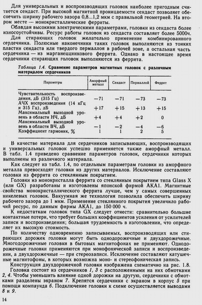 Индукция насыщения у монокристаллического феррита мало отличается от таковой для пермаллоя (0,45...0,48 и 0,5...0,55 Тл соответственно) при существенно лучшем качестве грани щели. На ленте с коэрцитивной силой менее 400 Э (0,04 Тл), а это все катушечные аудиоленты, рабочая индукция в полюсных наконечниках ГЗ более 0,1...0,12 Тл не нужна.