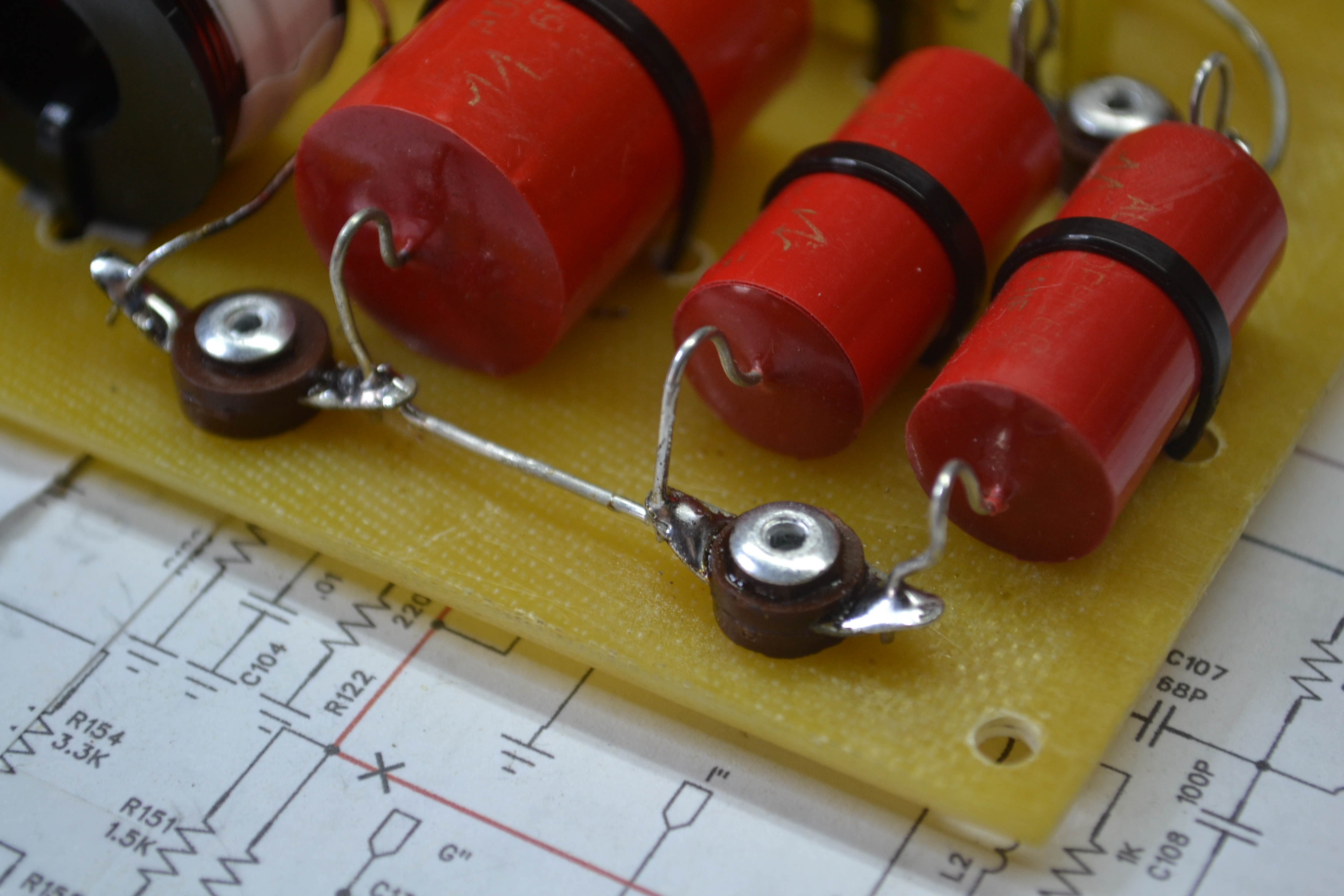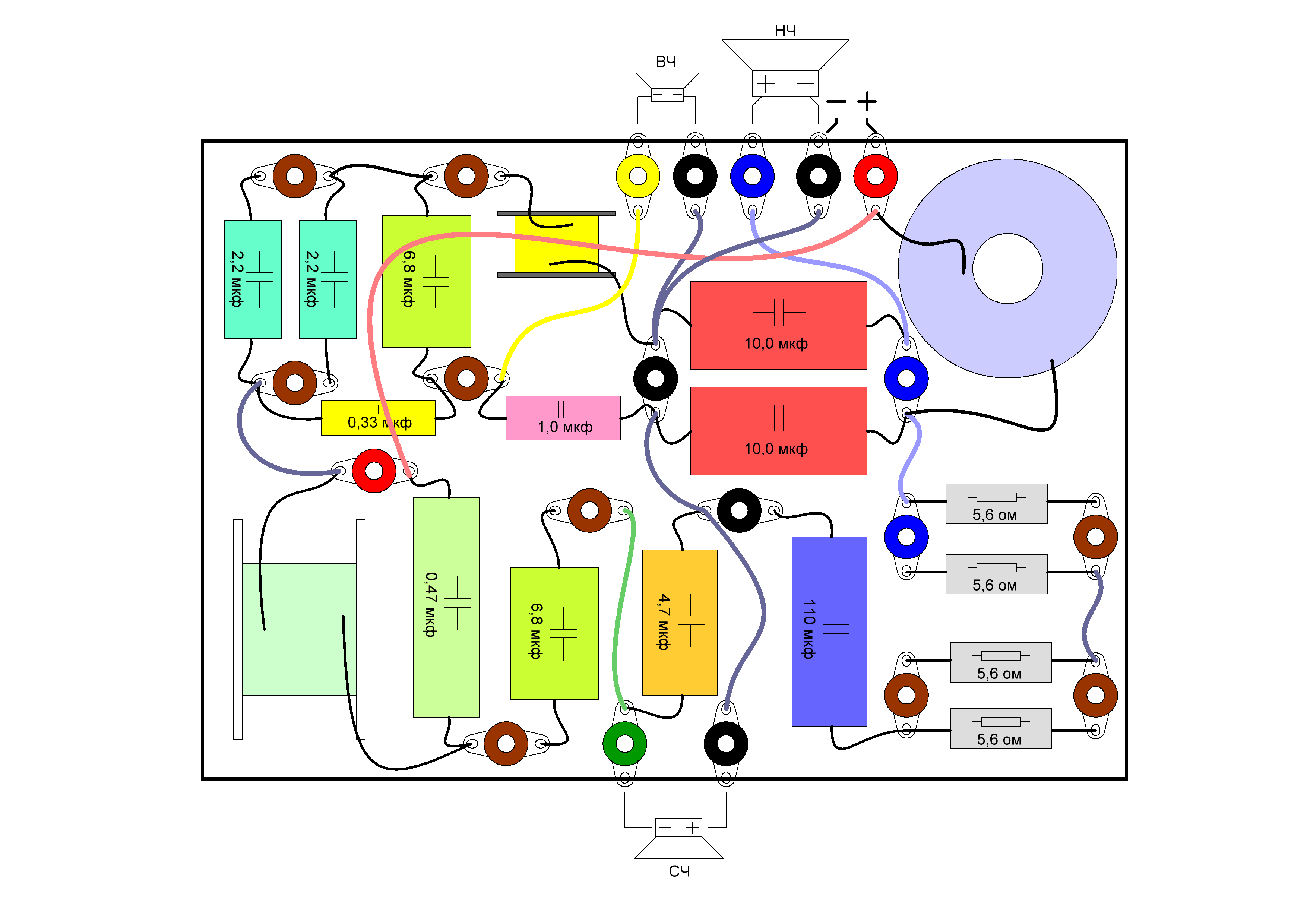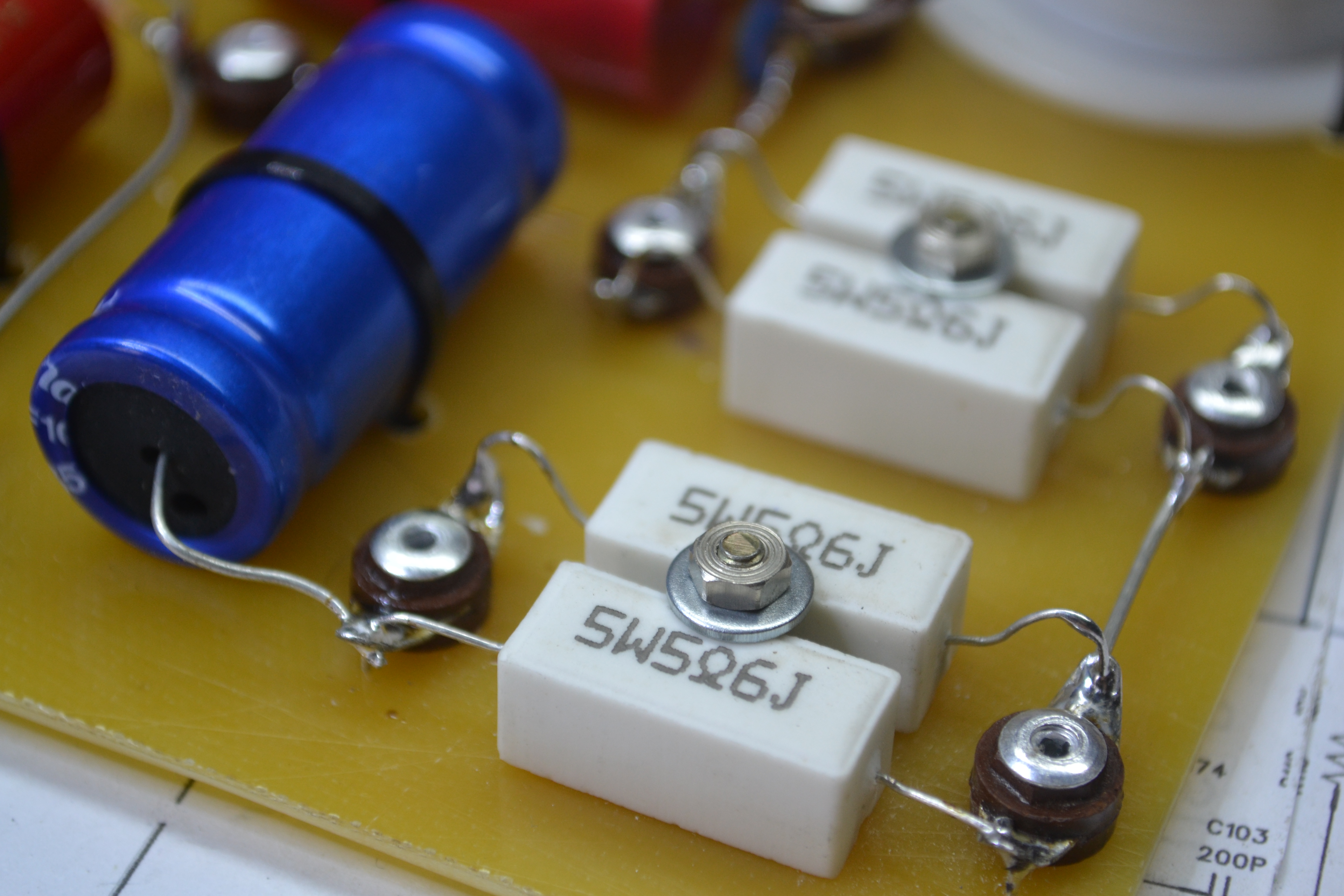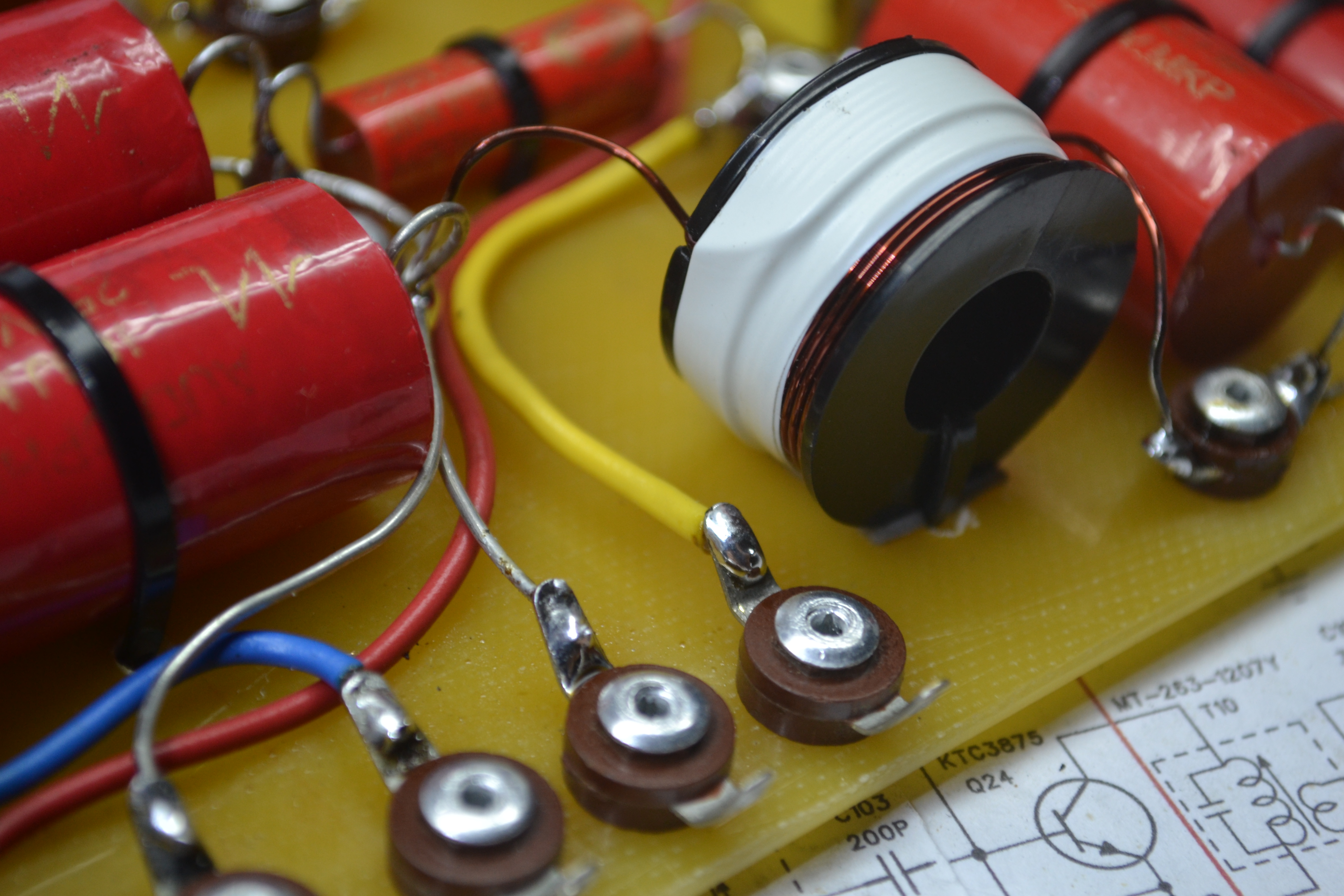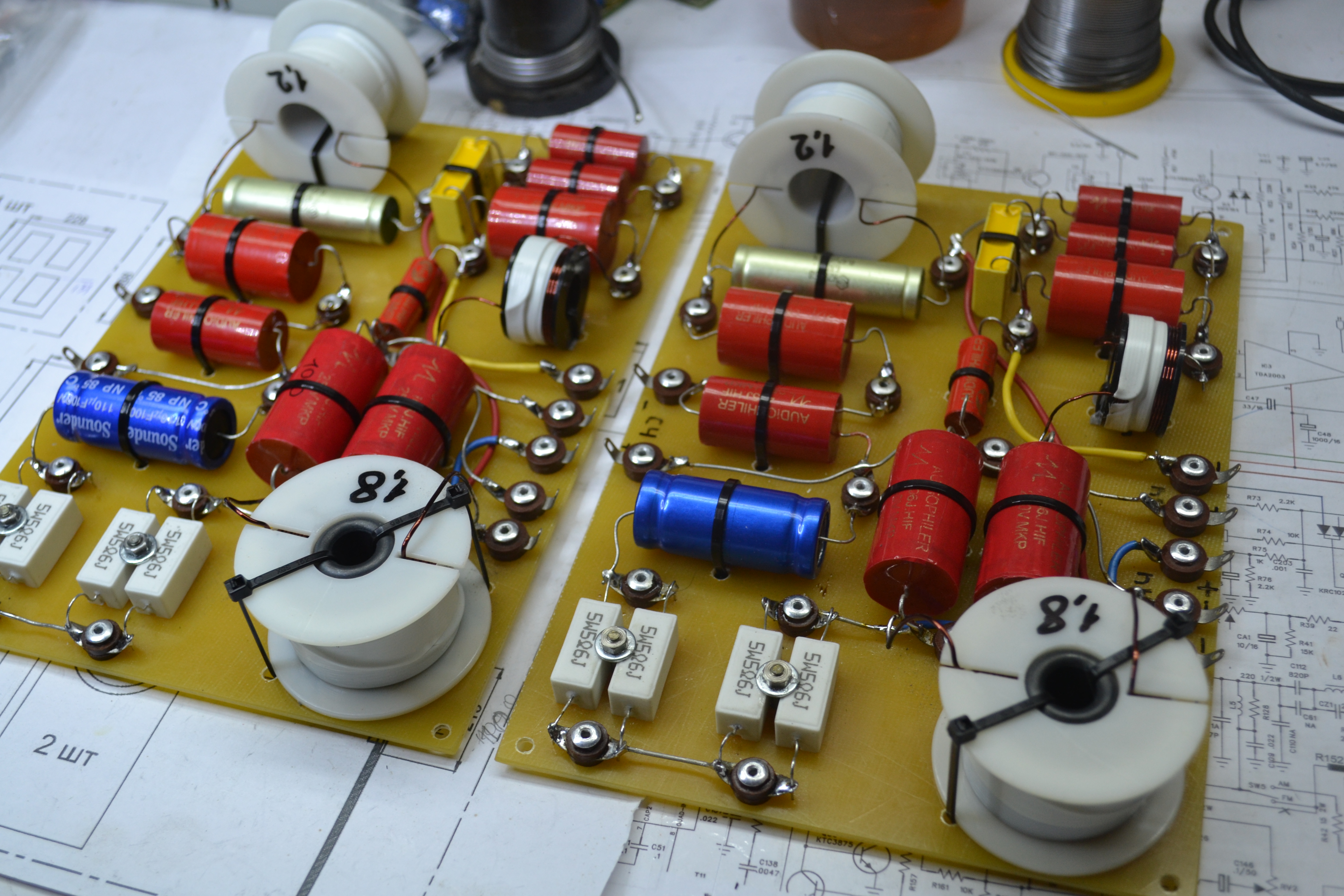 ID:	217783Теперь начинаем собирать (спаивать кроссовер) Я собирал на наших отечественных конденсаторах К73-16 и МБГО, резисторы я использовал на 10 Ом с подстройкой так как не нашел в магазине на 5.6 Ом.