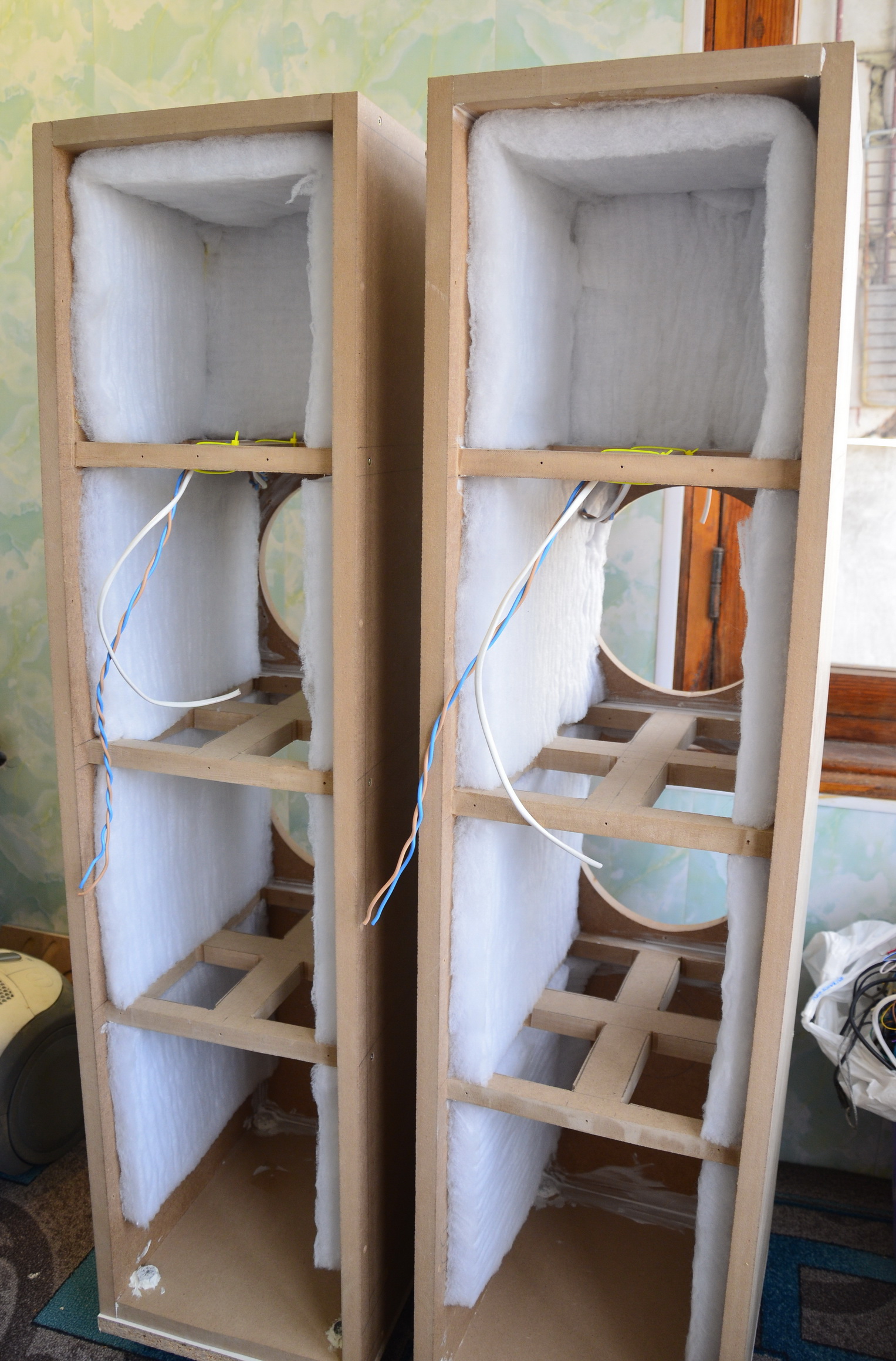 Много экмпериментировал с различными наполнителями и их количеством , правда на других ас ( рядом на фото ) , совсем без наполнителя получается очень много баса ,но он какой то рыхлый и сильно бубнящий , при забитии полностью впринципе бас нормальный на имеется небольшой спад . На фото мои колонки , при таком синтепоне бас идеальный , как говориться плотный и упругий , очень устраивает . Вообще акустика очень хорошая , слушаю уже третий месяц ненарадуюсь звуком. Нажмите на изображение для увеличения.