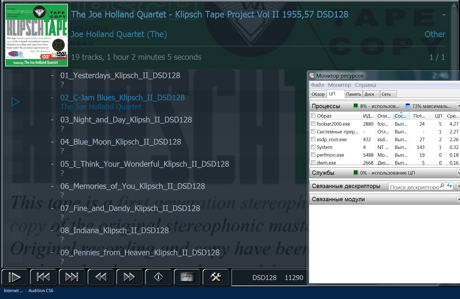 Загрузка проца в реалтайме при полосовой порезке через дефонику, DSD128