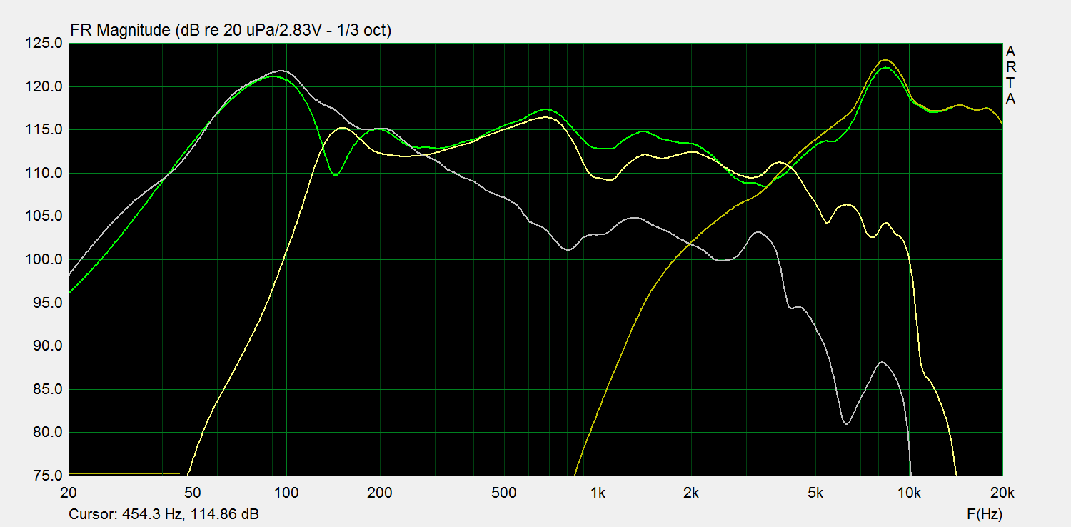 Да, но с 1 метра не увижу толком разделение НЧ-СЧ. Может быть попробовать в ближнем поле измерить АЧХ с фильтром и без для каждого динамика? Тогда будет видна работа фильтров. Только не понимаю как быть с параллельно включенными НЧ. Думаю нужно снимать АЧХ каждого с фильтром и без и суммировать. Ну и бафл степ добавить.