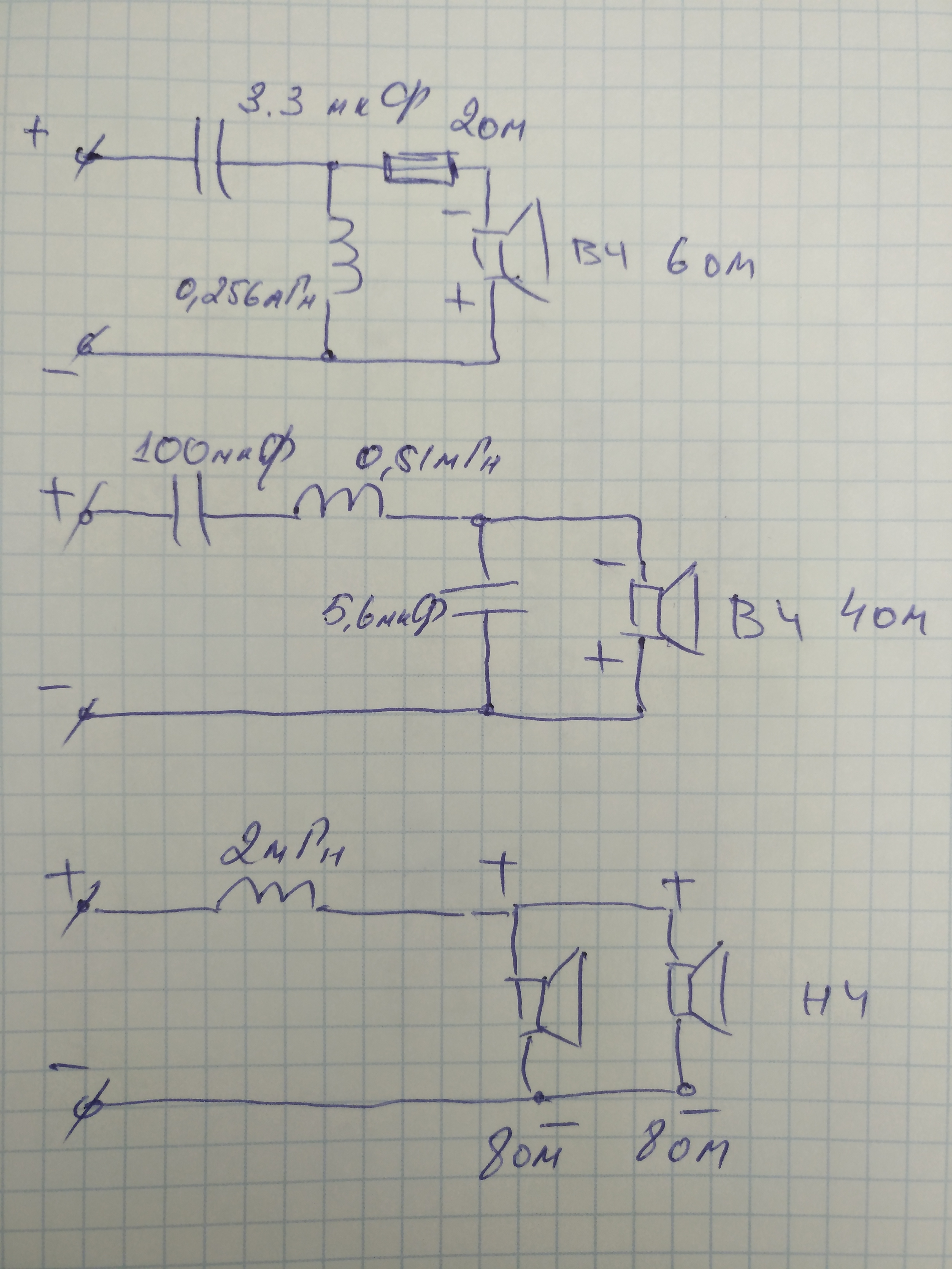 Остальное имеет много камней, сплошные кросс-наводки, и риск пожечь усилитель (например ФВЧ в случае отключения пищалки превращается в почти КЗ на частоте резонанса контура).