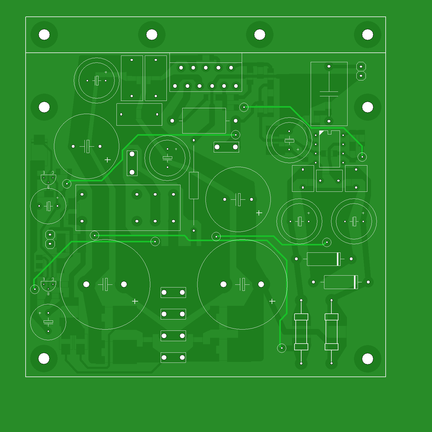 Ниже рисунок моей версии, пока еще сырой. Многое в смд-исполнении, поскольку имеется. Поле с отверстиями вверху - для крепления на заказной радиатор, либо отрезается.