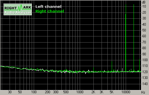 тот что ровненький это спектр интермодов звуковухи esi ,второй спектр это цапа- прога RMAA cо стандартными настройками