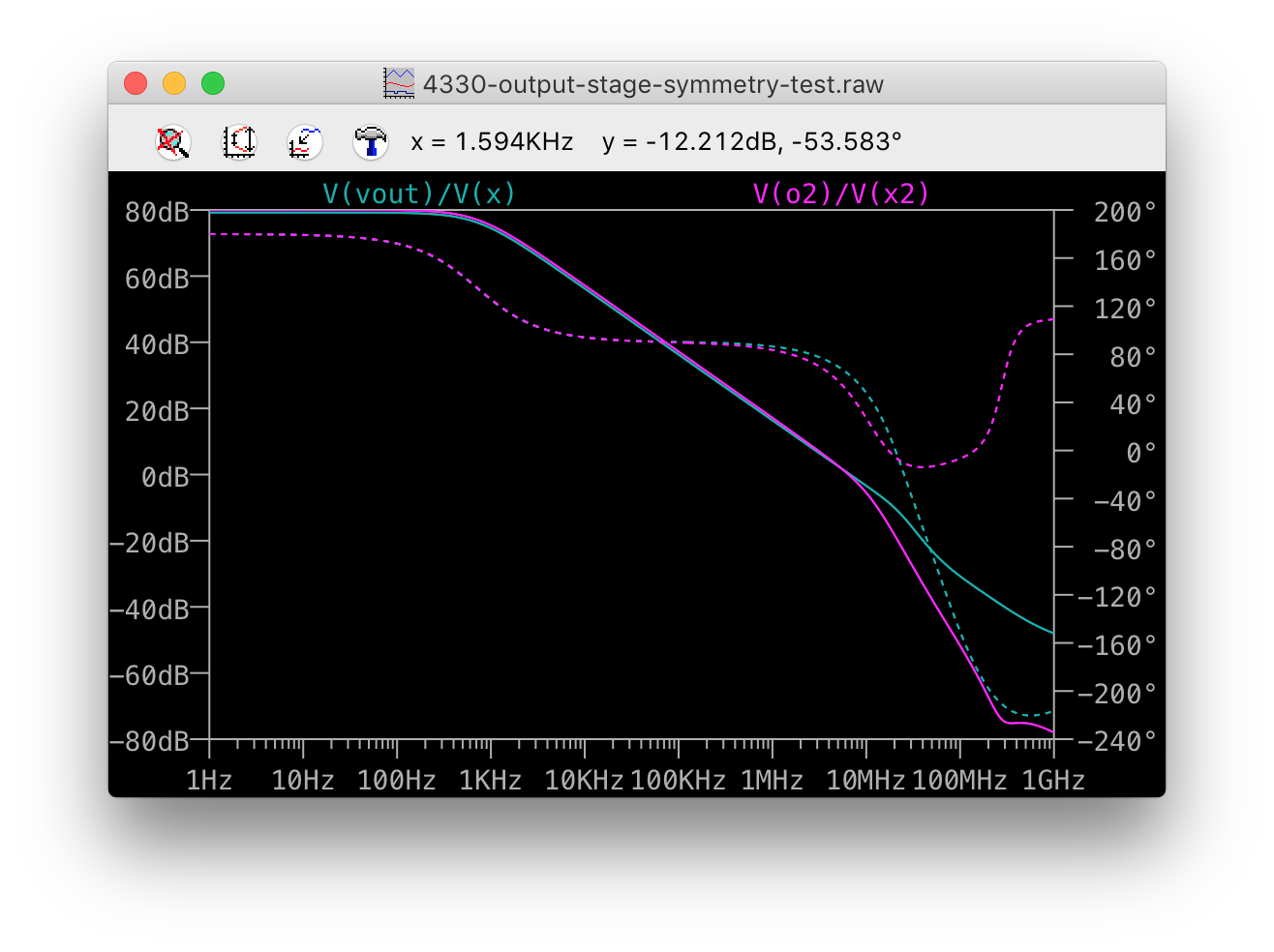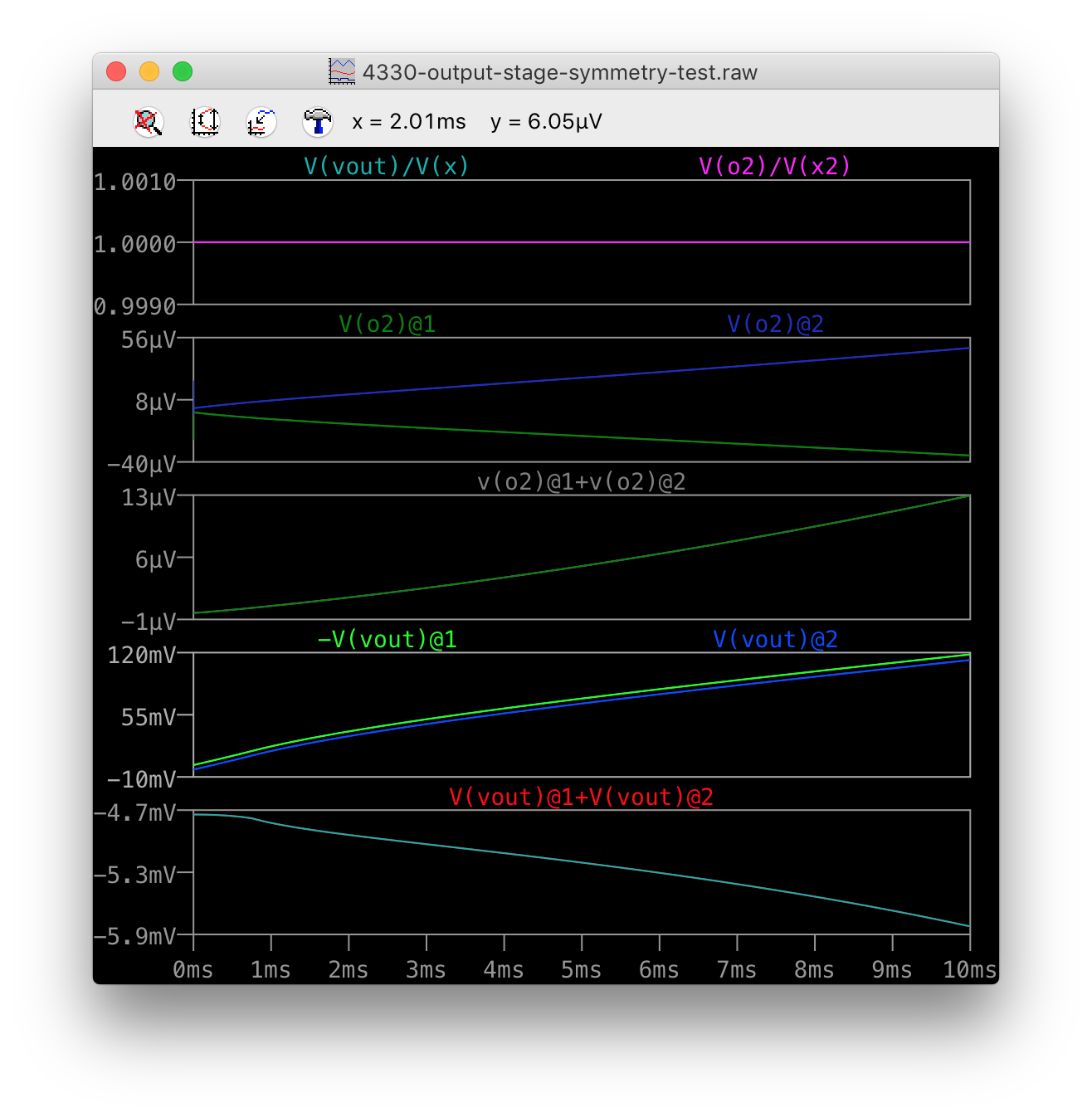 Итого, выход Никитина порядка ста раз менее симметричен, чем простой комплиментарный биполярный.