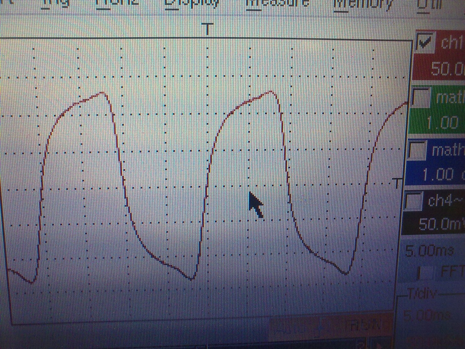 Народ, прокомментируйте пожалуйста следующие фото. Измерения проводил с включенным резистором 10 Ом в нулевой провод. Напряжение в сети 243 В. Падение напряжения на резисторе 0,108 мВ. Измеренный ток х.х. амперметром около 10мА. Смущают провалы в вершинах.
