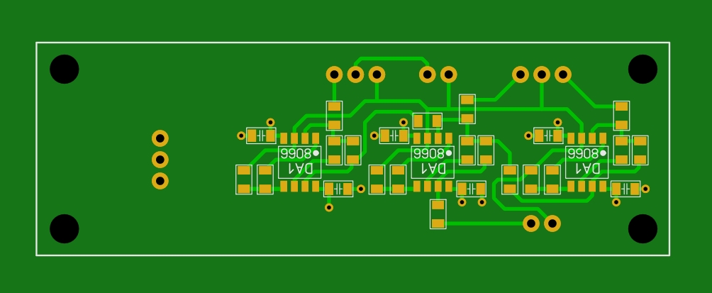 По приведенной выше схеме сделан макет . Монтаж полуобьемный , т.е. далеко не оптимальный . На выходе IRFP взяты только для проверки работоспособности схемы . Что поставить на выход и сколько - далее определимся . На схеме изображена следящая схема стабилизации тока покоя , совмещенная с термостабилизацией . При испытаниях в макете показала прекрасные результаты .