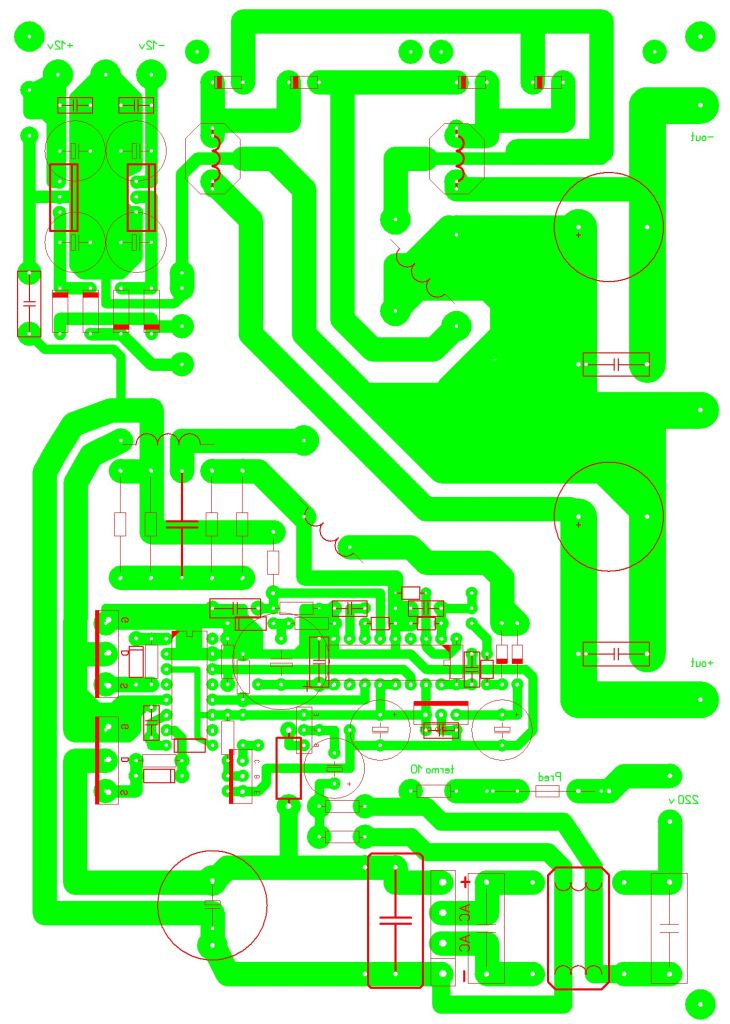 Доброго дня, Алексей! Собственно собирал я по вот этой схеме. SF16 у нас нет, я поставил 1N4007 и на вольтодобавку и по затворам. Печатку и фото прилагаю.