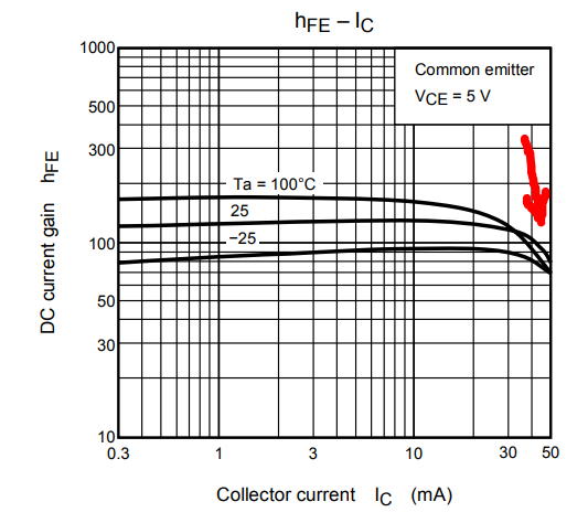 1. Измерение h21 при токе коллектора 1, 5, 10, 20, 30, 50 мА при напряжении коллектор-эммитер 5В (старался сделать максимально близко по даташиту)