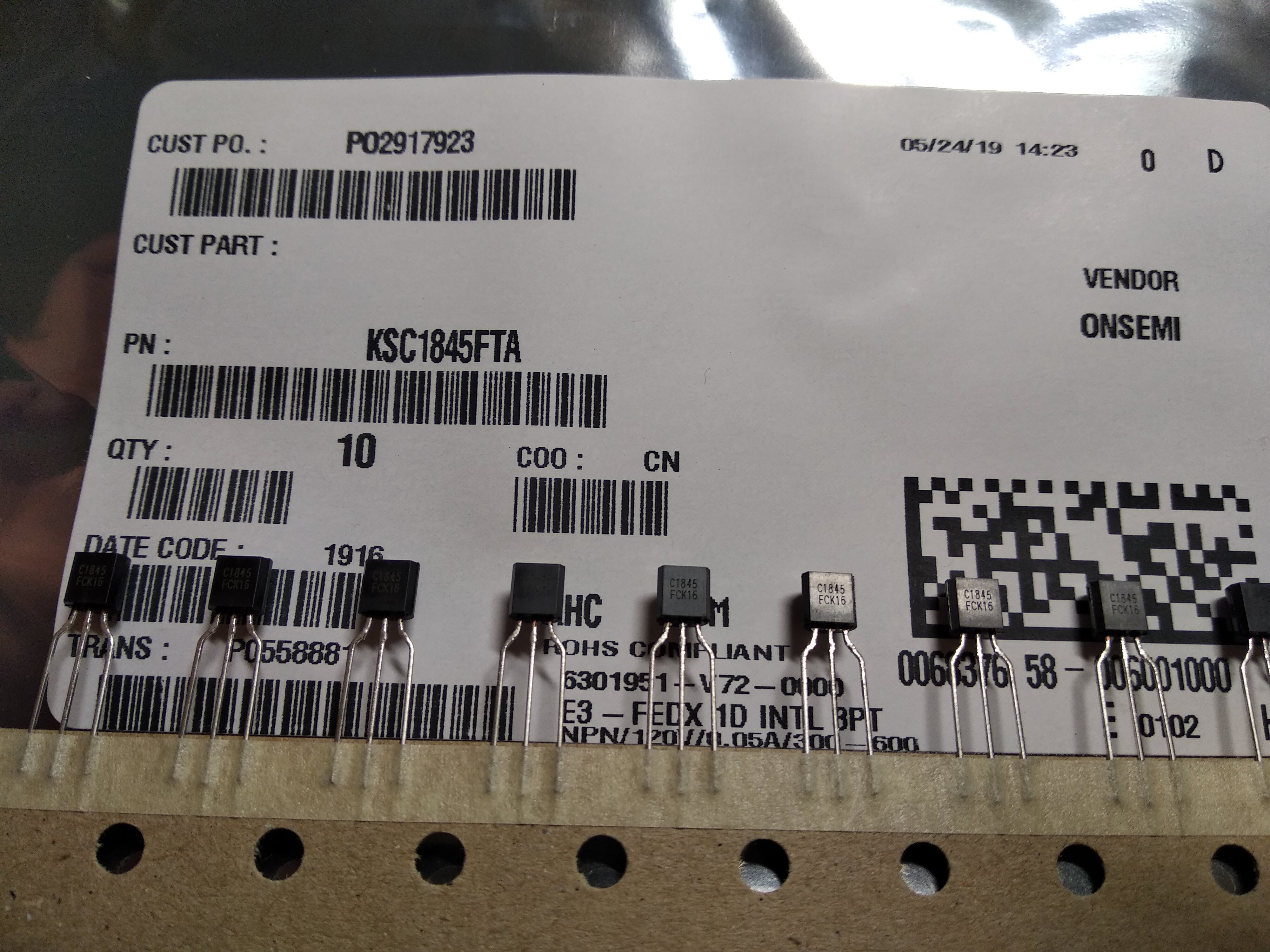 Вот, например, приобретенный на arrow транзистор KSC1845FTA. Выводы к магниту липнут. И все же оригинал.