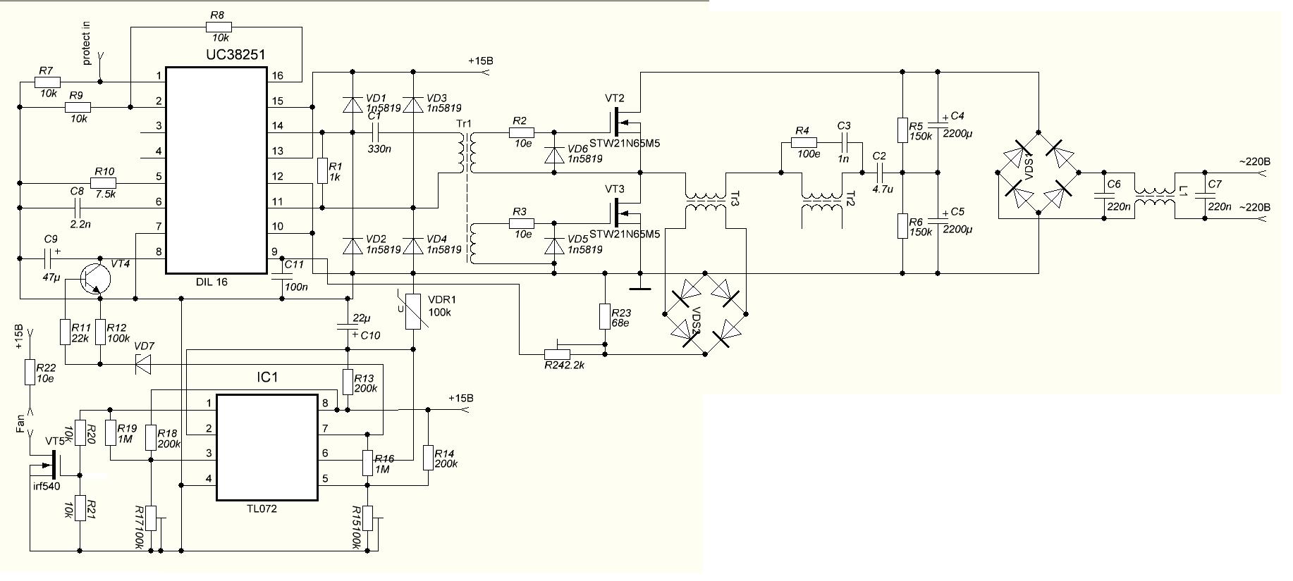 Как и обещал, выкладываю полную схему того чего развел на ПП, вторичные обмотки на схеме рисовать не стал.Shema.rar