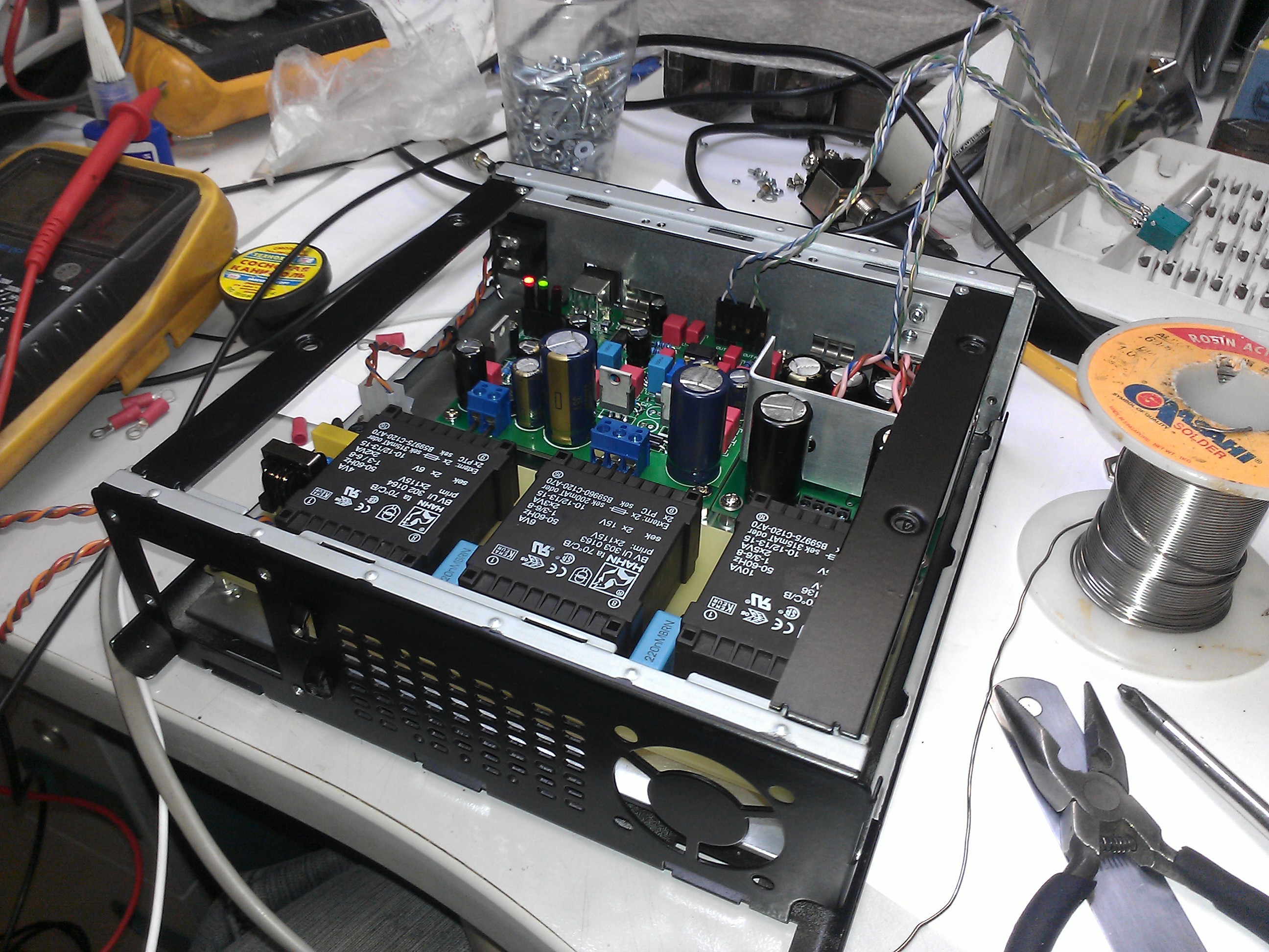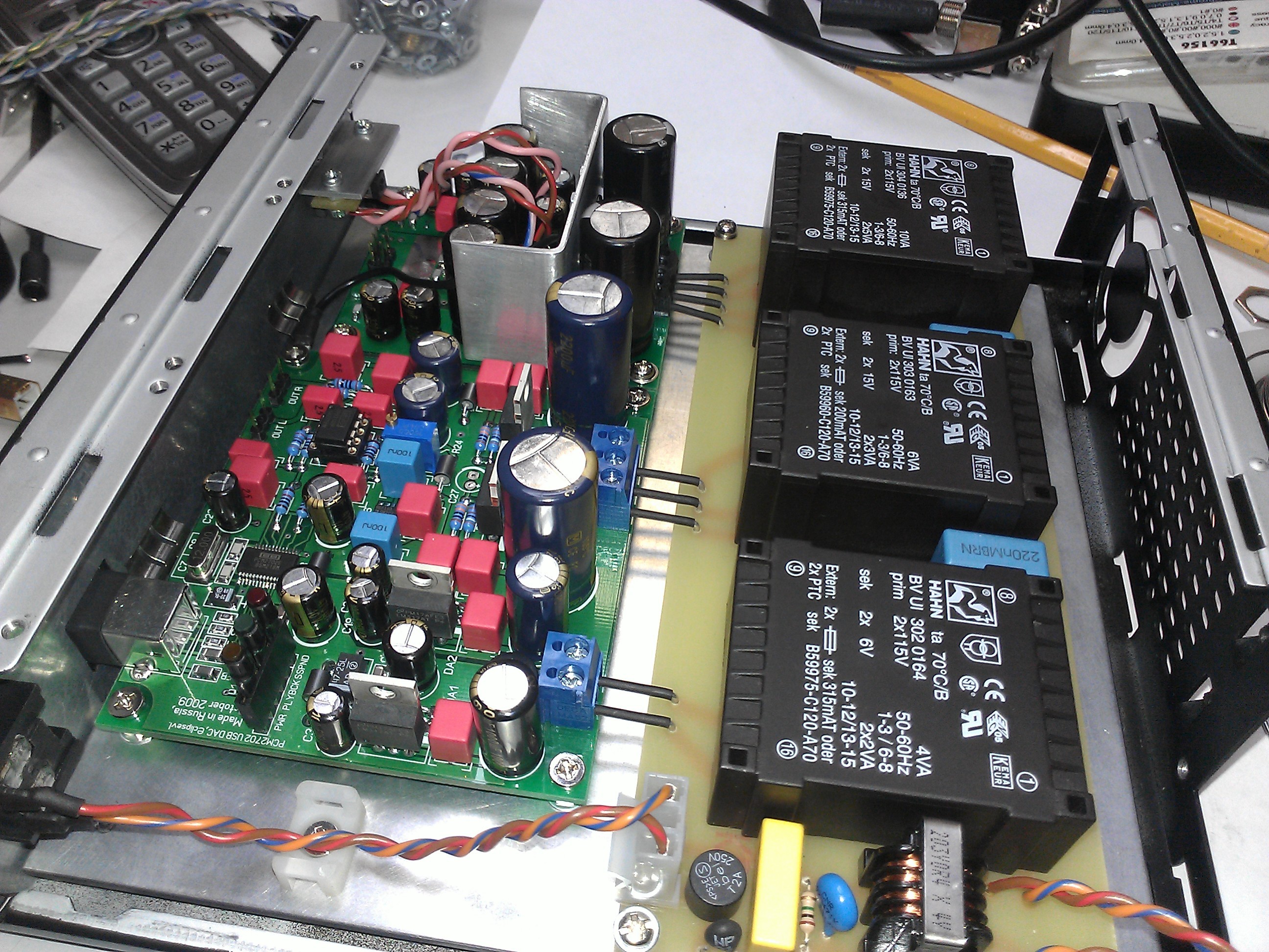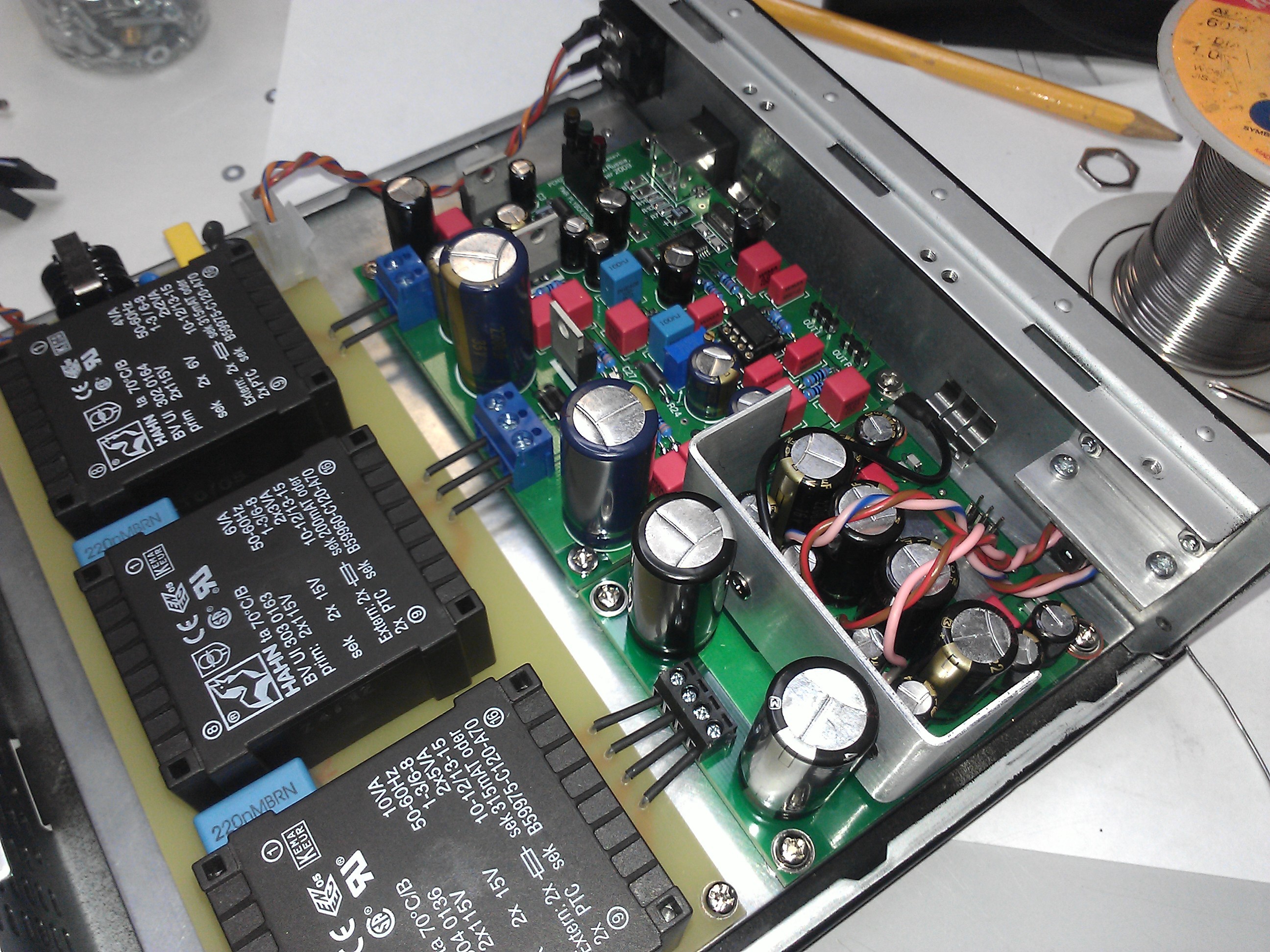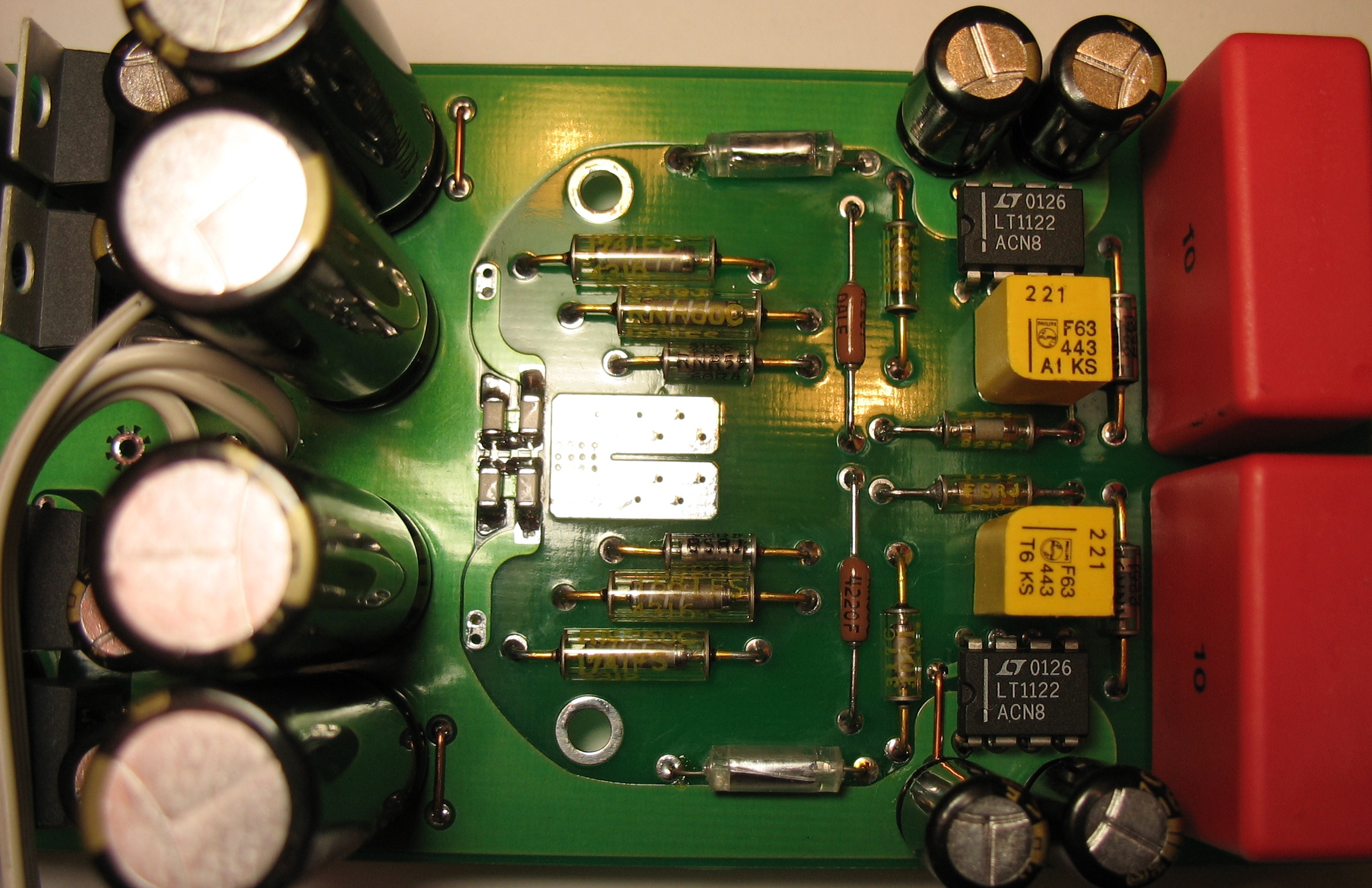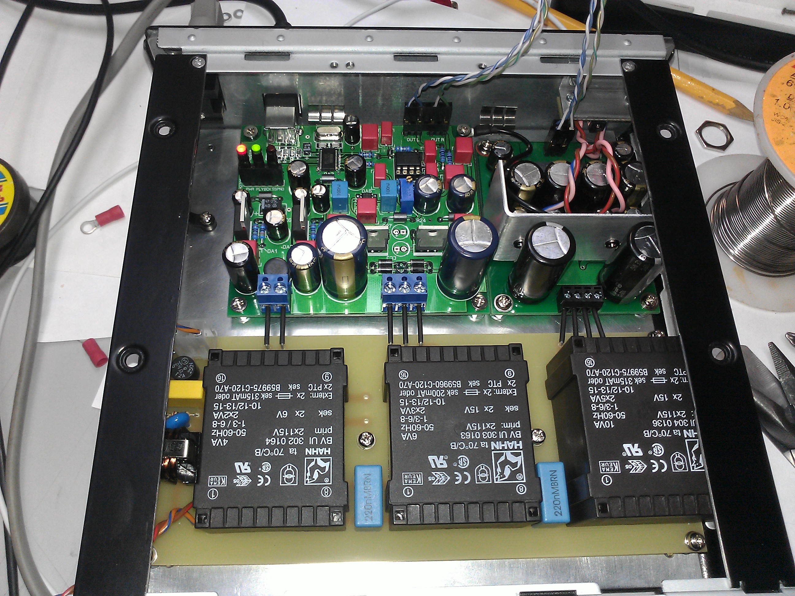 Давным давно задумал сравнить звучание имеющихся в моём распоряжении м/с ADSL драйверов в схеме композитного усилителя для наушников. Задумано три варианта практически в одной топологической схеме на THS6012/TPA6120 , EL1503a/1508, LT1795. На сегодняшний день готовы первые два (уже все). На 5-ом фото нечто вроде стенда. Пока греется интерсиловский вариант, скажу про TPA6120 - очень точное, детальное звучание без резкости, очень хорошо чувствуется пространство, "атмосфера"... Сметает схему "Шведа" напрочь. Слушали с Михаилом (m910) на АКГ К-601 и Аудиотехнике А-700 и Петром (steel_monkey) на очень неординарых СТАКСАХ SR-3, SR-5.