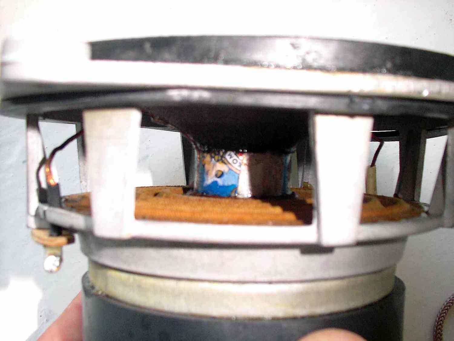 а счастие наблюдается в тот момент когда в один стакан упакован посто 20гдс1-8, а в другой переделаный. подаём по 1ватту одного музыкального сигнала без фильтров на прямую и слушаем. вопервых переделаный громче. диапазон реально от 100гц до 10кгц точно есть на слух. ровный звук особенно если приглушить герленом.в обшем как у нормального бумажного динамика с лёгким дифузором с мощностью 20-25 вт( к стати подавал полный муз сигнал без фильтров 40вт. держит и недумает сгорать. в непеределаном имеем: заваленные нч( сильно задемпфирован видать), визглявую сипящую середину ( резкие кричащие некоторые частоты у гитары , например) и полное отсутствие звука выше 5кгц. после переделки ,совместно с 6гд11 на вч, пущеным через фильтр 3го порядка,отличный баланс сч\вч . прорисовка на нижней середине звуков верхнего диапазона от басс гитары и барабанов типа бонг. сделал себе 4 штуки . повторяемость хорошая. сделал бы больше, да 20гдсы закончились. попробую из 10гд 34 подобное сотворить только катушку перематывать прийдёться дополнительно. измерений не производил, доверяю своим ушам, и ушам тех кто слушал со мной.