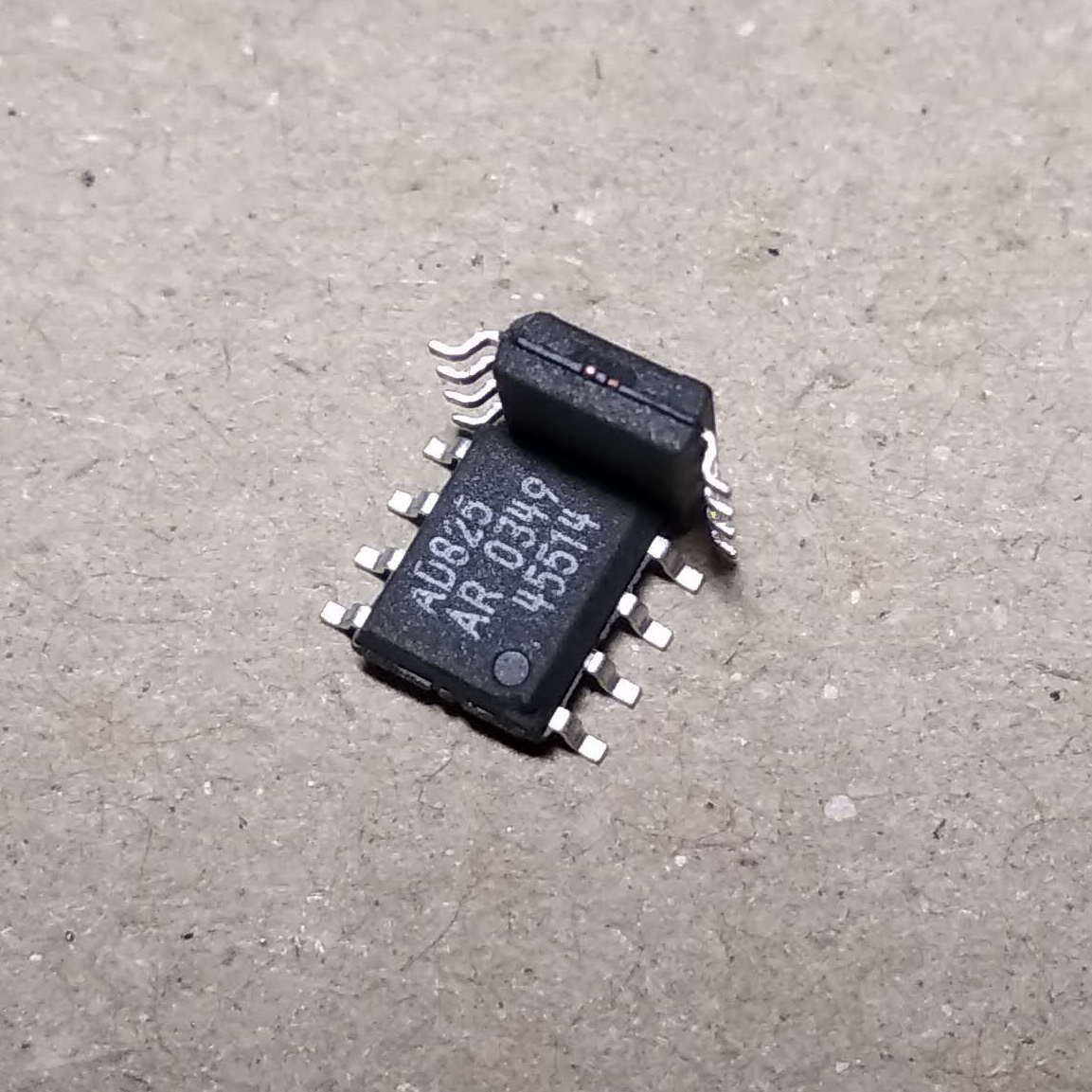 825 нету, в соике только AD822, AD817 и AD711 у всех один большой кружок с надписью снизу и две медные точки сбоку, AD7811, AD5542, AD1853 один большой кружок с надписью снизу.