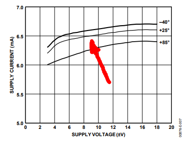 Например, у моих выше выложенных AD825, ток покоя при питании 18в (максимум, что дает мой регулируемый блок питания, правильнее было измерять при 30 вольтах) - 6.3 мА