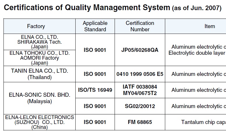 Элна с ними не сотрудничает с 2008г. И никогда не покупала Lelon, а производила свои конденсаторы, по своим технологиям, на их линиях.