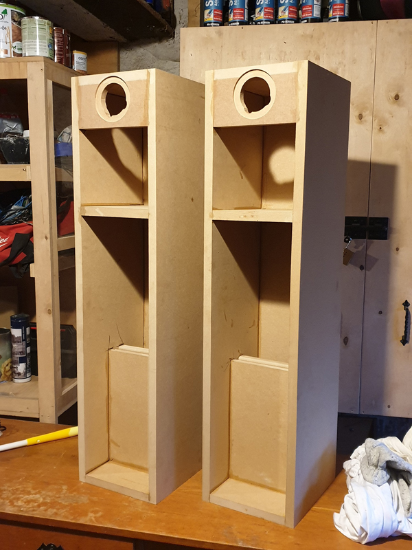 Всем спасибо за ответы, очень полезная информация. У меня последний вопрос остался, чтобы начать рисовать чертёж ящика, насчёт распорок. Ящик (закрытый) будет достаточно высокий (65-70 см) из 25 мм МДФ, динамик один на высоте примерно 50 см (выбрал исходя из калькулятора мод комнаты), надо определиться с количеством и расположением распорок. Вопрос такой, что лучше для жёсткости ящика, делать внизу высокие поперечные вертикальные распорки (как на рисунке) или просто несколько горизонтальных распорок?