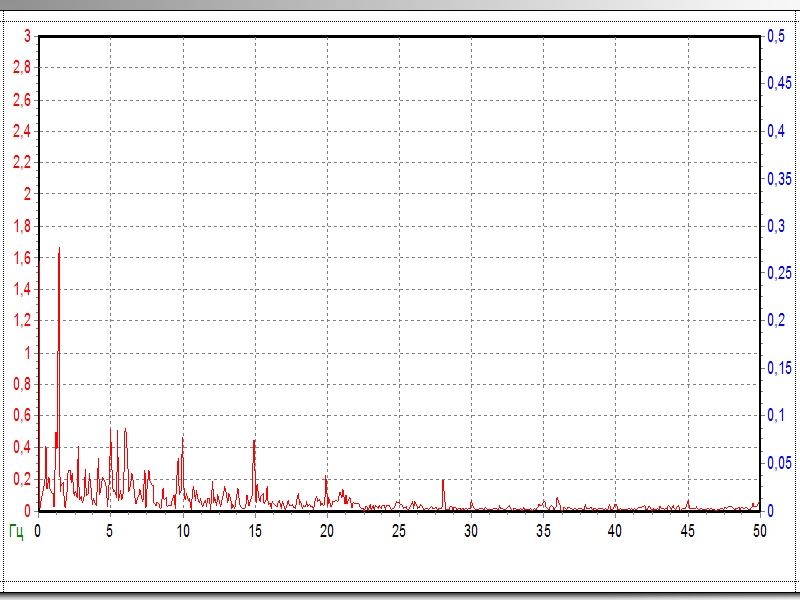 Основной вклад около 1Гц - прижимн(ые)ой ролик(и). D=11мм x 3.14=34.54 ; 47,6/34,54=1,378Гц.