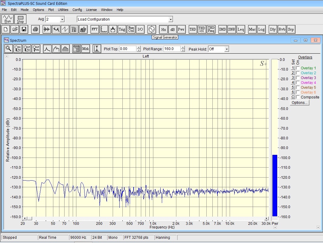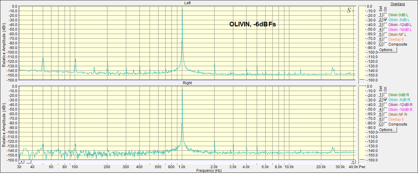 На спектрах 0 и -6 присутствует пичек на 26 кгц - это я забыл лампу выключить, она в 20см от АЦП, от нее помеха а АЦП не экранирован, как видите.